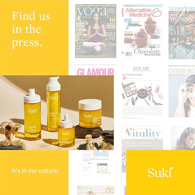 - KNOW YOUR BEAUTY - All Suki Skincare Products Are Free Of Synthetic Allergens, Parabens, Phthalates, Petrochemicals, Synthetic Fragrances / Dyes Or Sulfates.