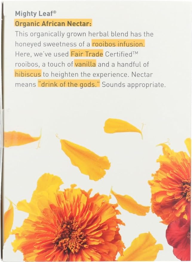 Mighty Leaf Herbal Tea, Organic African Nectar, Rooibos Blend with Sweet and Fruity Notes, 15 Silk Bags (Pack of 3)