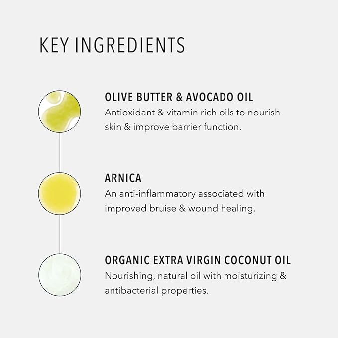 - Nourishing: Coconut, olive & avocado oils are combined with calming extracts to soothe stressed, cracked and dry skin. Nourishing peptides & antioxidants work to nourish and protect skin from free radicals