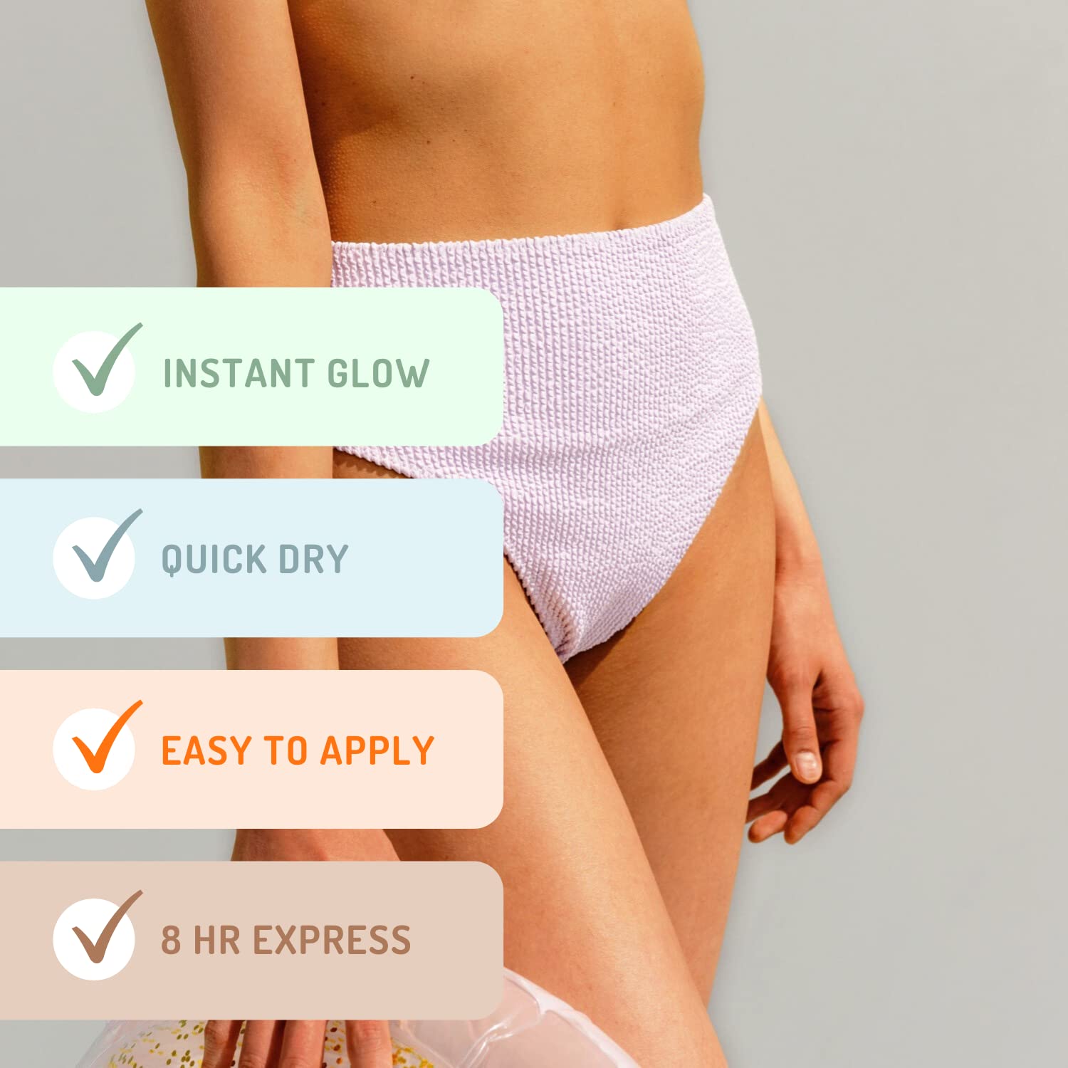 - Instant tan effect: Get an instant tan with our instant tanning lotion. This sun tanning lotion offers a quick, sun-kissed glow, making it perfect for last-minute plans. Enjoy a radiant look with our easy-to-use self tanner.