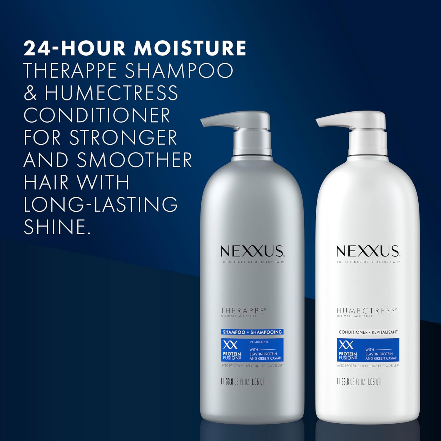 - ULTIMATE MOISTURE: Transform your dry locks into smooth and shiny locks, as if you just came from the salon. The Nexxus shampoo and conditioner duo works together to help repair and rejuvenate hair