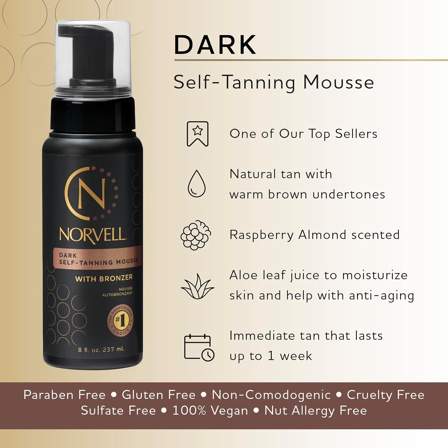 Norvell Sunless Dark Self Tanner Mousse with Bronzer 8 fl oz – Instant Natural Looking Fake Tan for a Bronzing Glow, Streak Free, Fast Drying, Long Lasting Sunless Tanning Color
