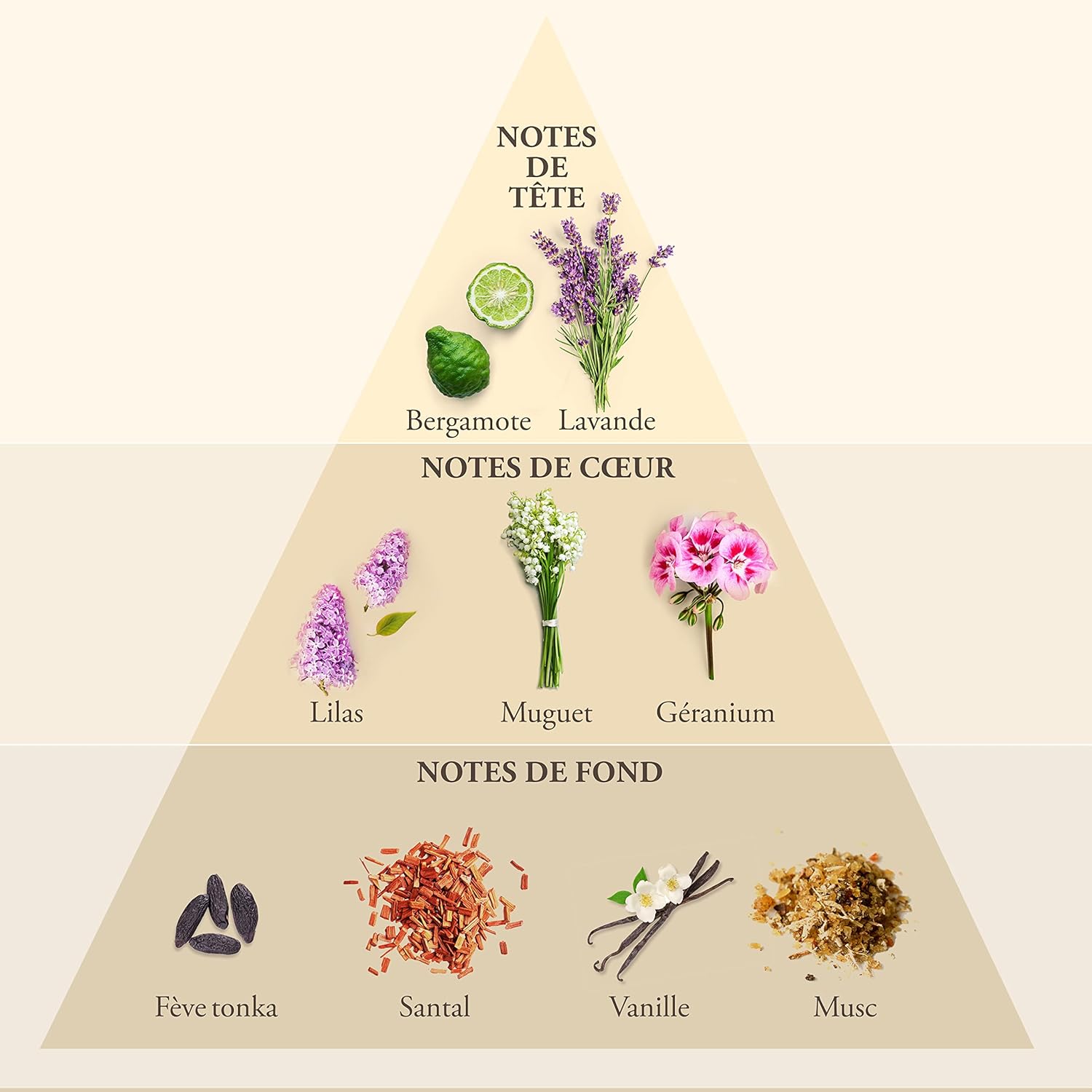 - FLORAL AND BALANCED HEART – Lavender, Lily of the Valley, Lilac, and Geranium bring softness and distinction.