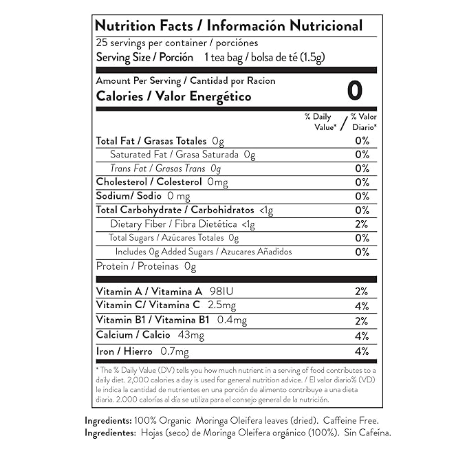 - MORINGA, A NUTRIENT-DENSE SUPERFOOD: Moringa is a superfood plant used traditionally for its nutritious properties and Ayurvedic benefits. As an herbal tea, you can conveniently enjoy Moringa's exceptional nutritious properties, and experience firsthand why Moringa is commonly referred to it as the 'Miracle Tree'.