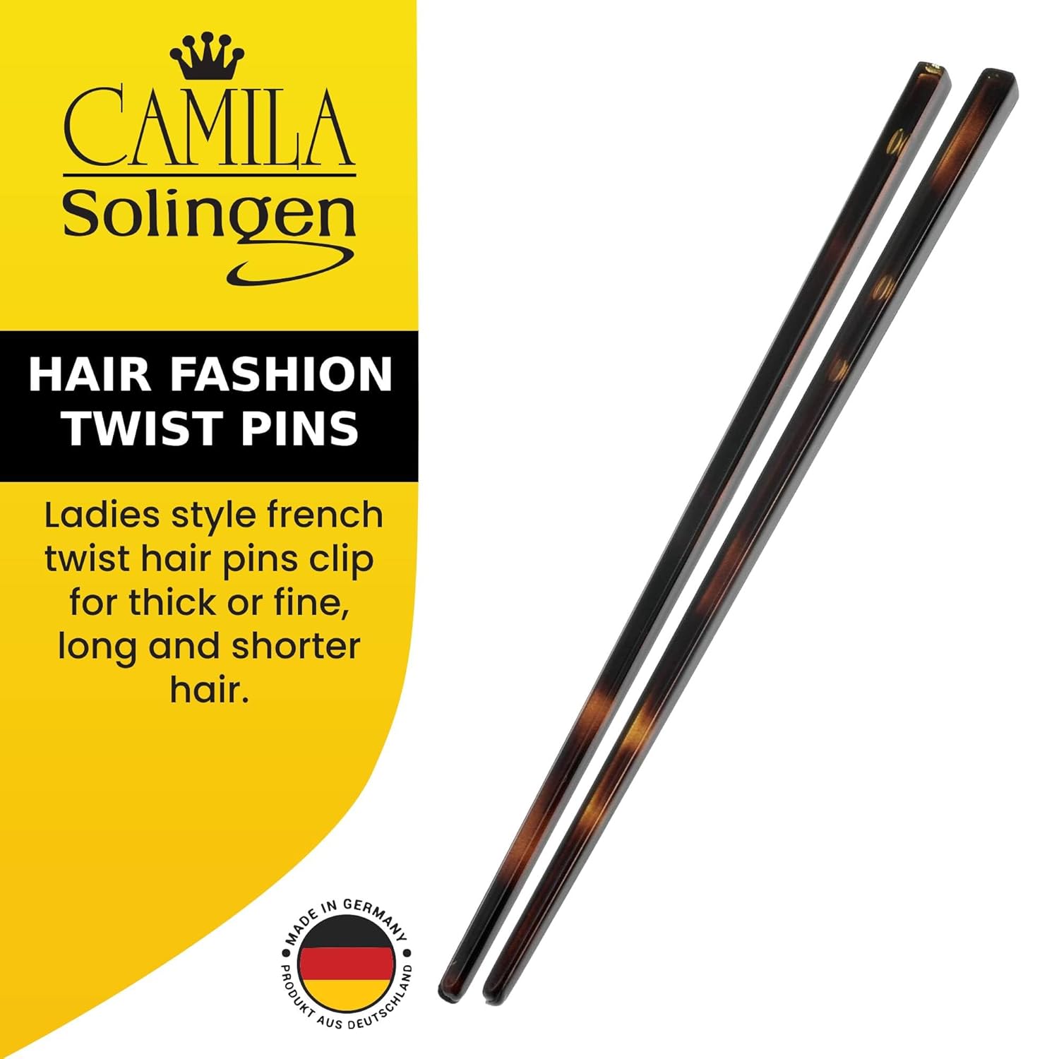 Camila Paris AD28/2 French Twist Stick Hair Pin, Set of 2 Tortoise Shell, Girls Chopsticks Hair Pins for Girls Spiral Updo Chignon Bun Holder, Styling Hair Accessories for Women, Made in France