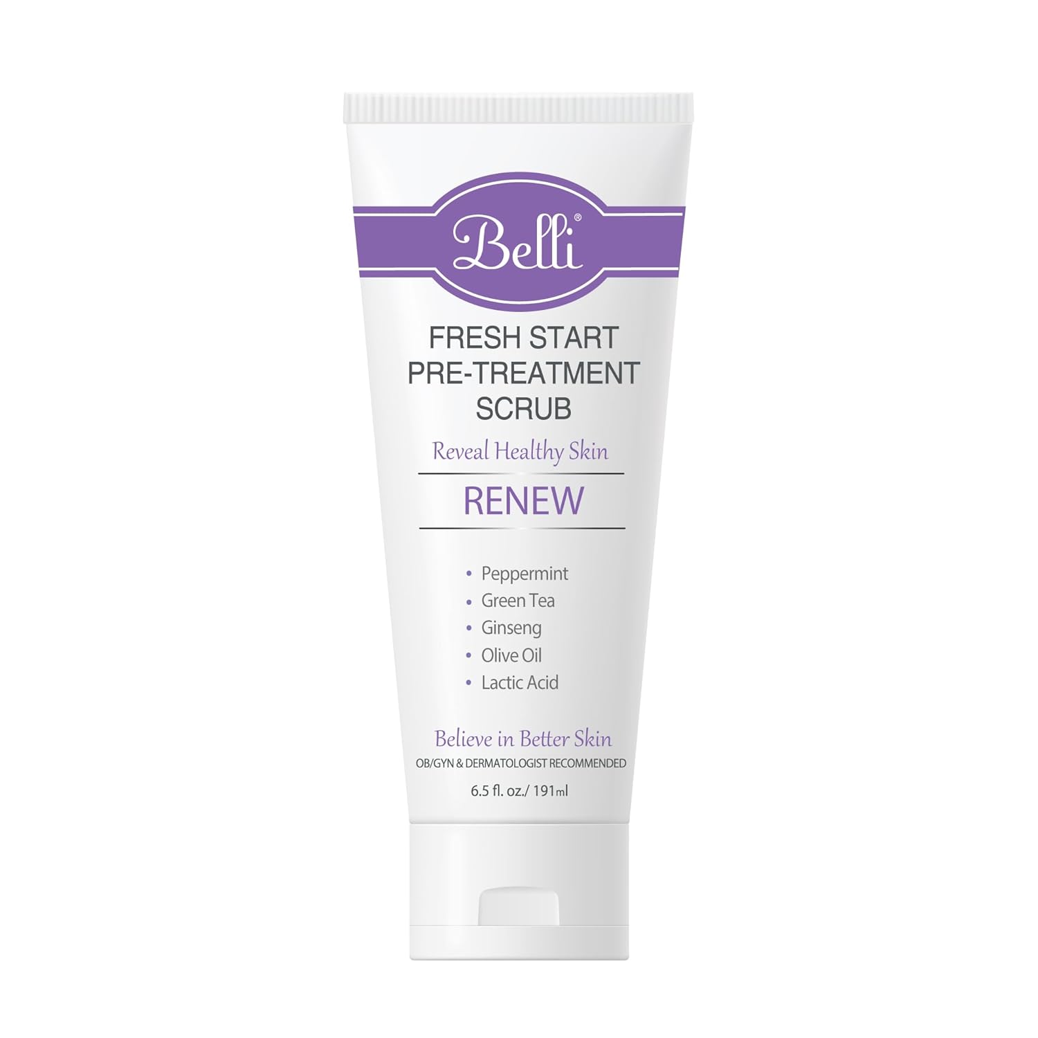 - HEALTHY SKIN RENEWAL: Belli's Fresh Start Pre-Treatment Scrub invigorates, suitable for face or body. Packed with green tea, ginseng, and peppermint oil, it uncovers new, healthy skin by exfoliating old cells.