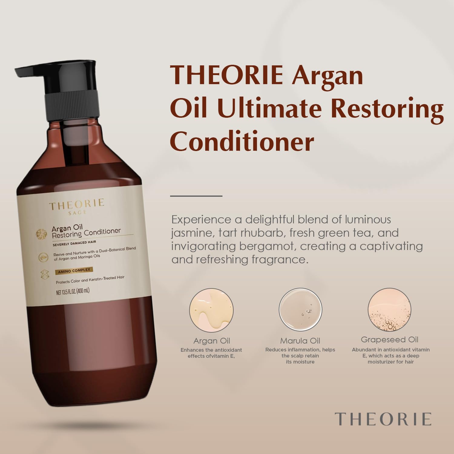 Theorie Argan Oil Ultimate Restoring Conditioner with Argan, Moringa, Grape Seed, and Sage Oil For Normal to Severely Damaged Hair,400 ml