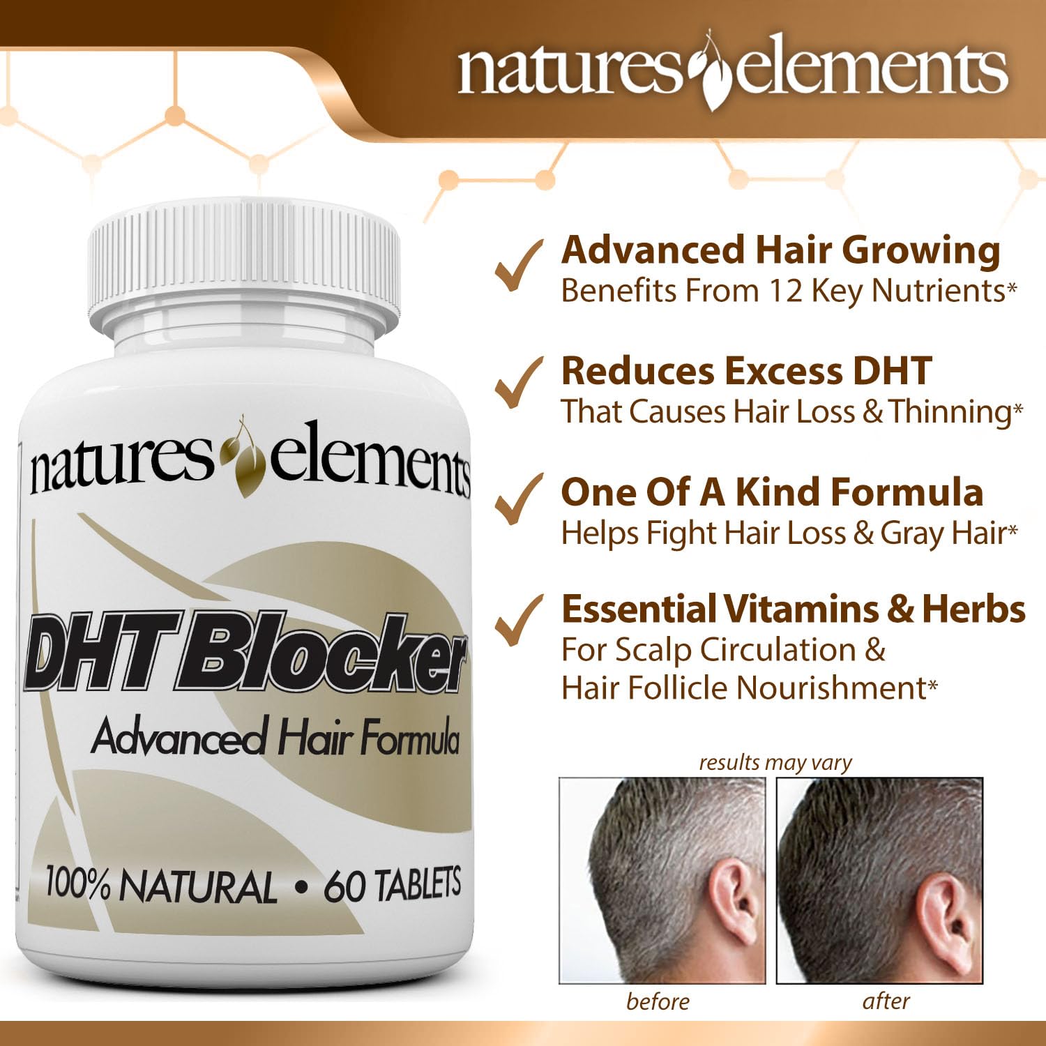 - DHT SUPPORT – This advanced complex includes a blend of herbs and vitamins to help reduce DHT and support healthy hair follicles and hormonal balance.