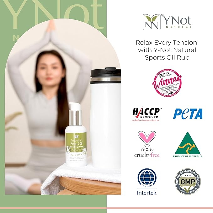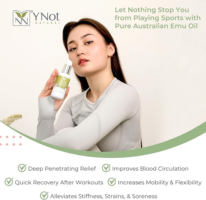 - Pure Australian Emu Oil: Y-Not Natural’s key ingredient, Emu Oil, enhances vitamin synergy. It consists of Omega 3, 6, and 9, amino acids, and minerals that harmoniously work together for a better you.