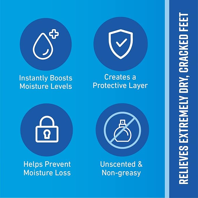 - Guaranteed relief for extremely dry feet: Creates a protective layer on the skin's surface, locking in moisture to keep even the driest, cracked feet feeling hydrated and healthy