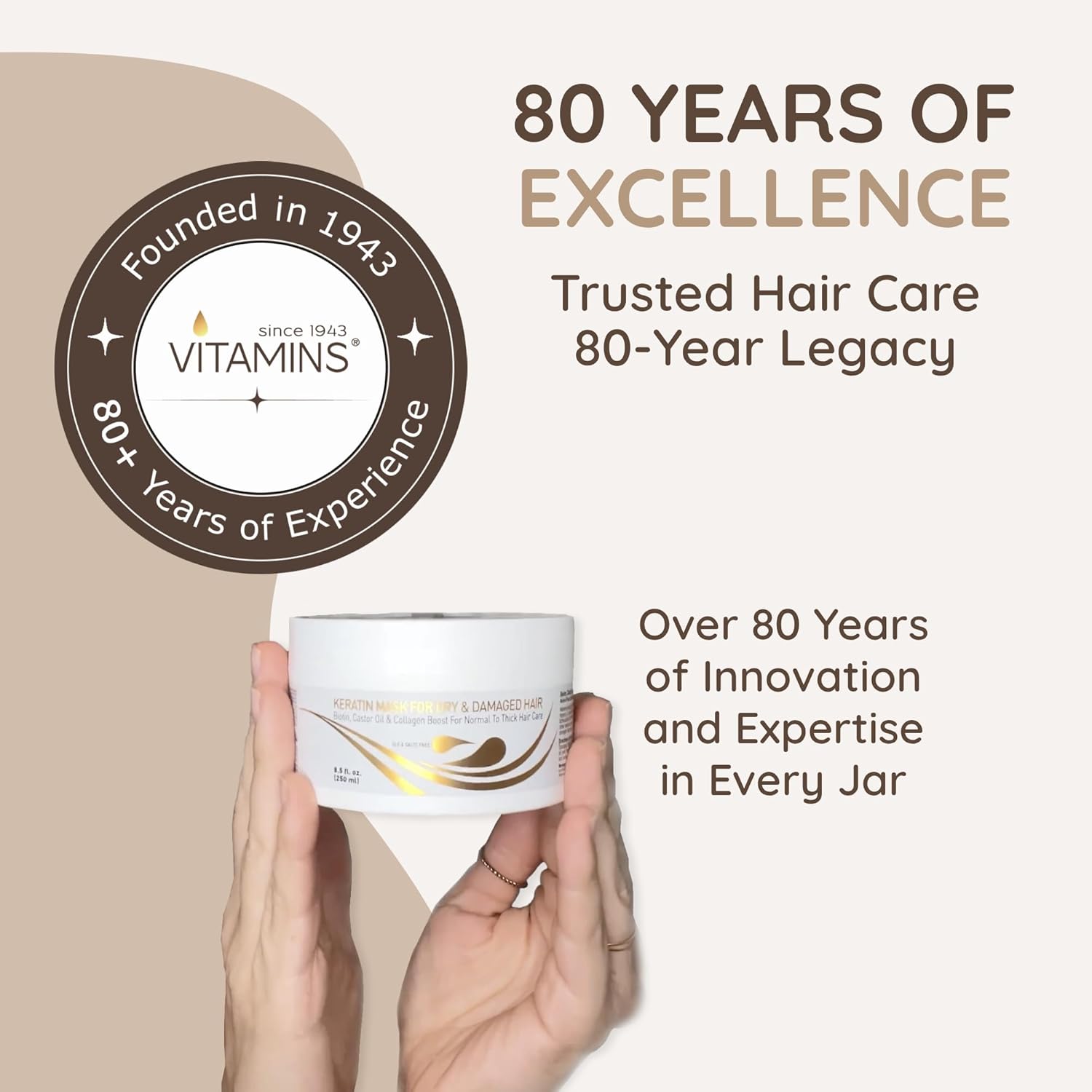 VITAMINS hair cosmetics Keratin Hair Mask Deep Conditioner for Dry Damaged Hair - Biotin, Collagen & Castor Oil Deep Conditioning, Repairs Split Ends & Restores Shine - For Thick Locks