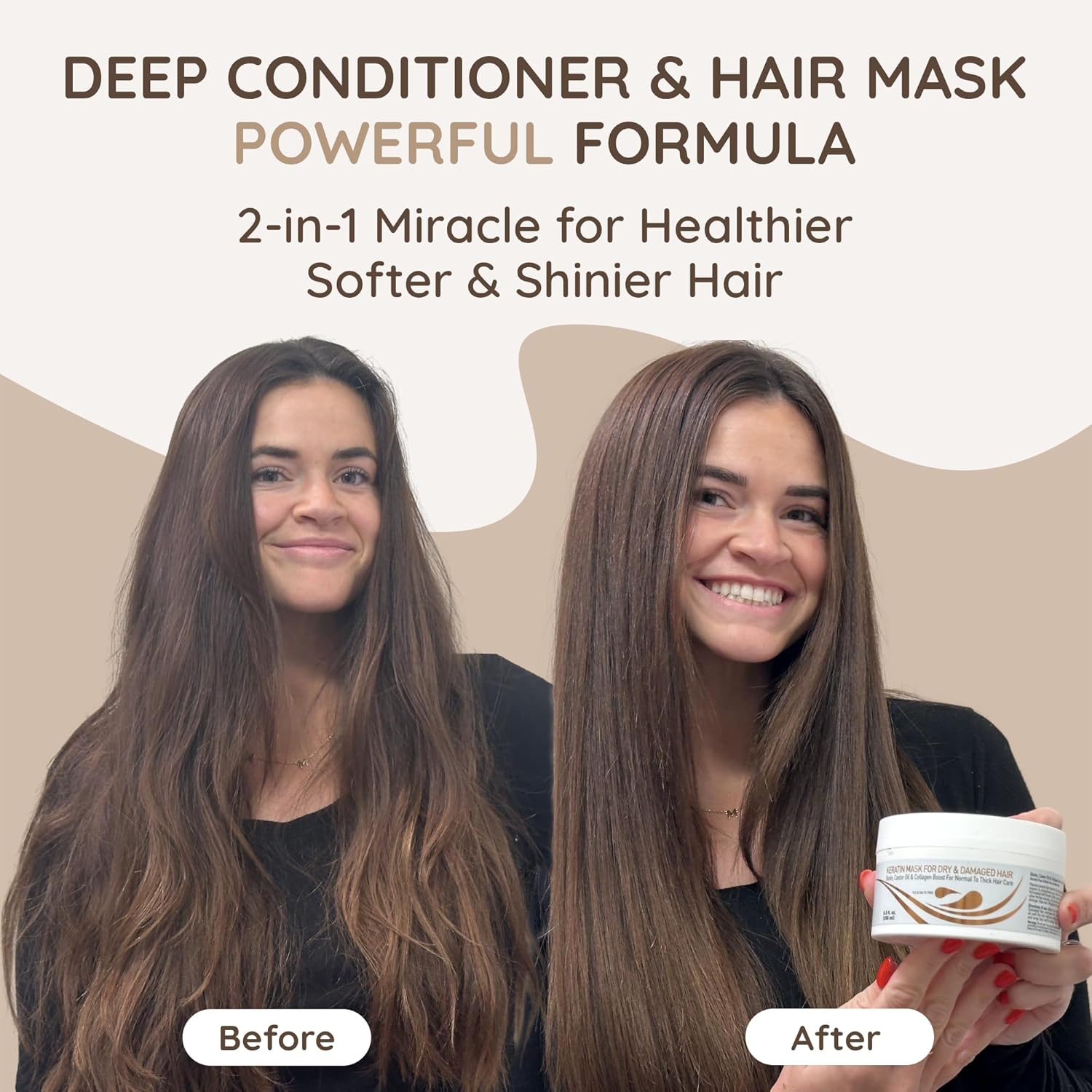 - Silky Smooth: Achieve silky results with our deep conditioner protein hair mask for dry damaged hair and growth, infused with biotin and collagen