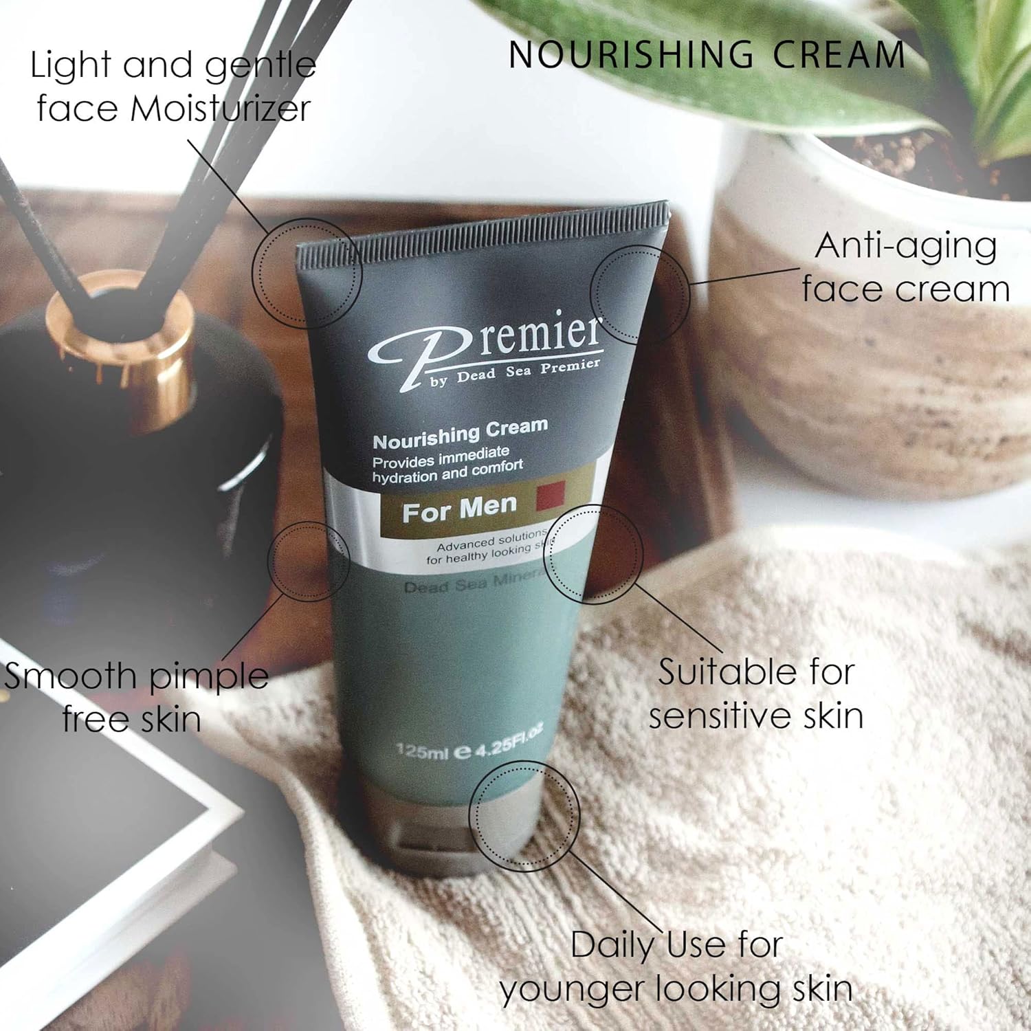 - NOURISHING CREAM FOR MEN: LIGHT WEIGHT, absorbs in seconds with no sticky feel. STRENGTHENS SKIN ability to combat dryness and signs of aging while maintaining light moisture levels throughout the day. PROTECTING AND NOURISHING With continued use skin appearance is improved, fine lines and wrinkles diminish. ADVANCED ANTI AGING FORMULA, supercharged blend with vitamins, minerals, plant extracts and antioxidants for a lightweight, advanced and effective facial moisturizer.