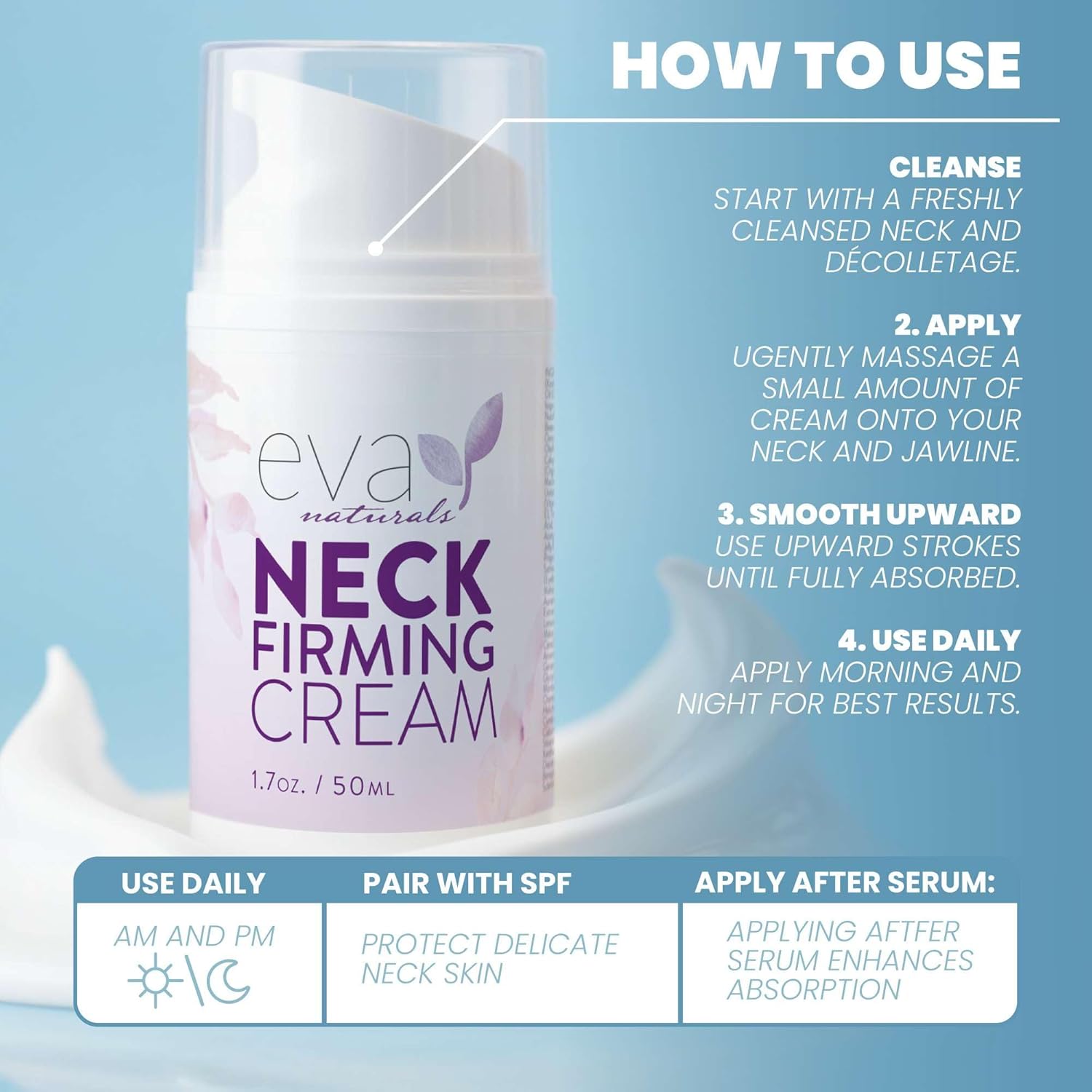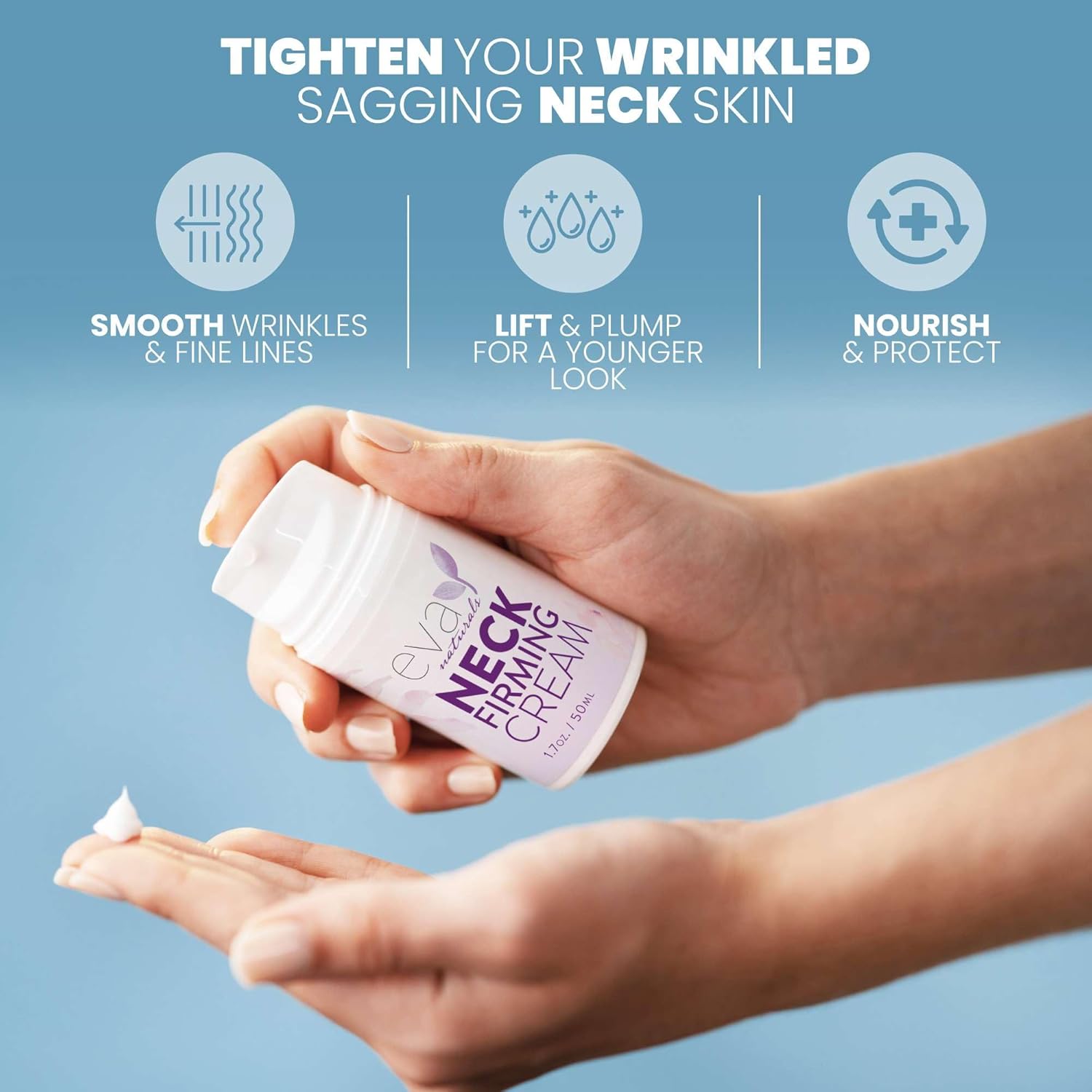 - Target Turkey Neck & Sagging Skin With Powerful Firming Action: Combat sagging skin, wrinkles, and turkey neck with Eva Naturals Neck Firming Cream. Our advanced formula boosts collagen production, improving skin elasticity for a tighter, firmer appearance. Specifically designed for face, neck, and décolleté care, this anti-aging cream helps lift and smooth aging skin while reducing visible neck lines. Ideal for women seeking visible tightening and firming results.