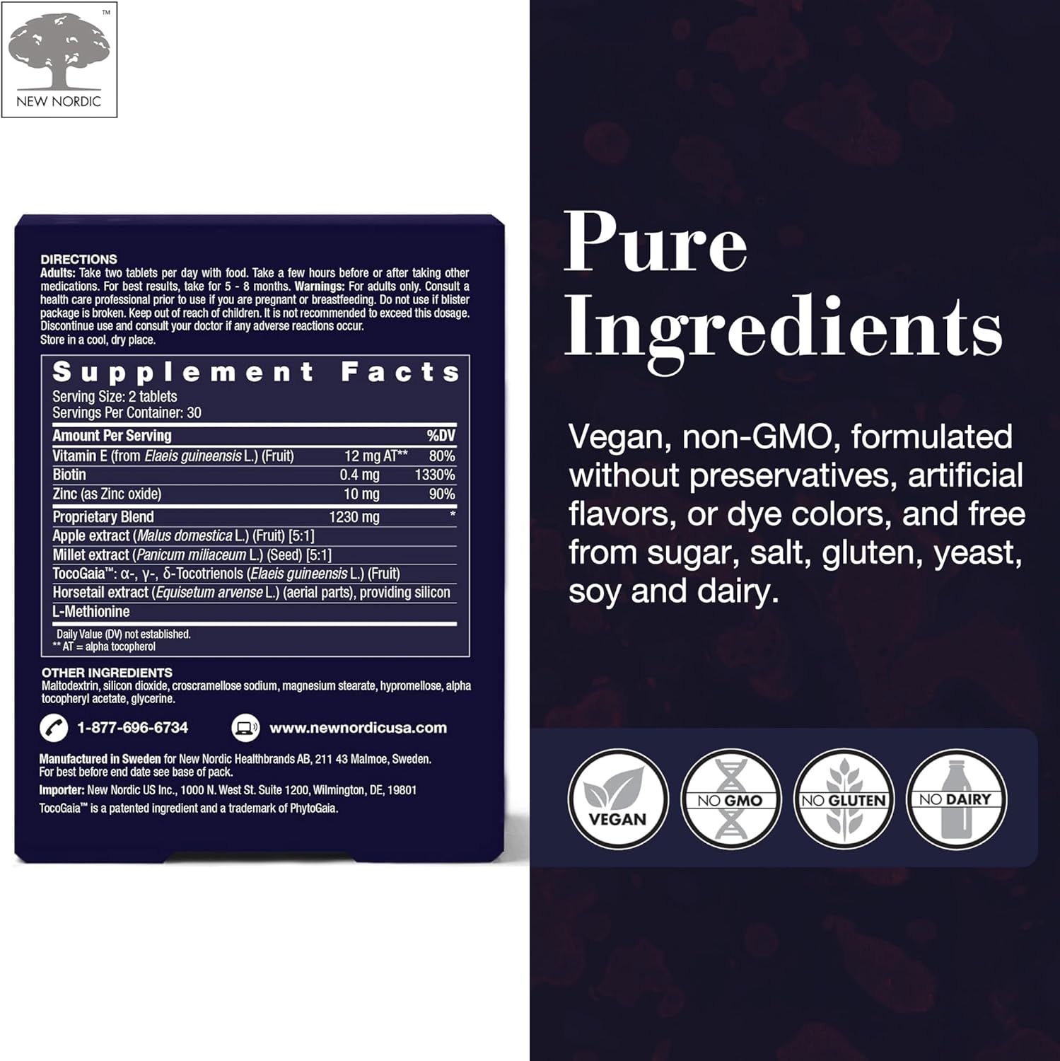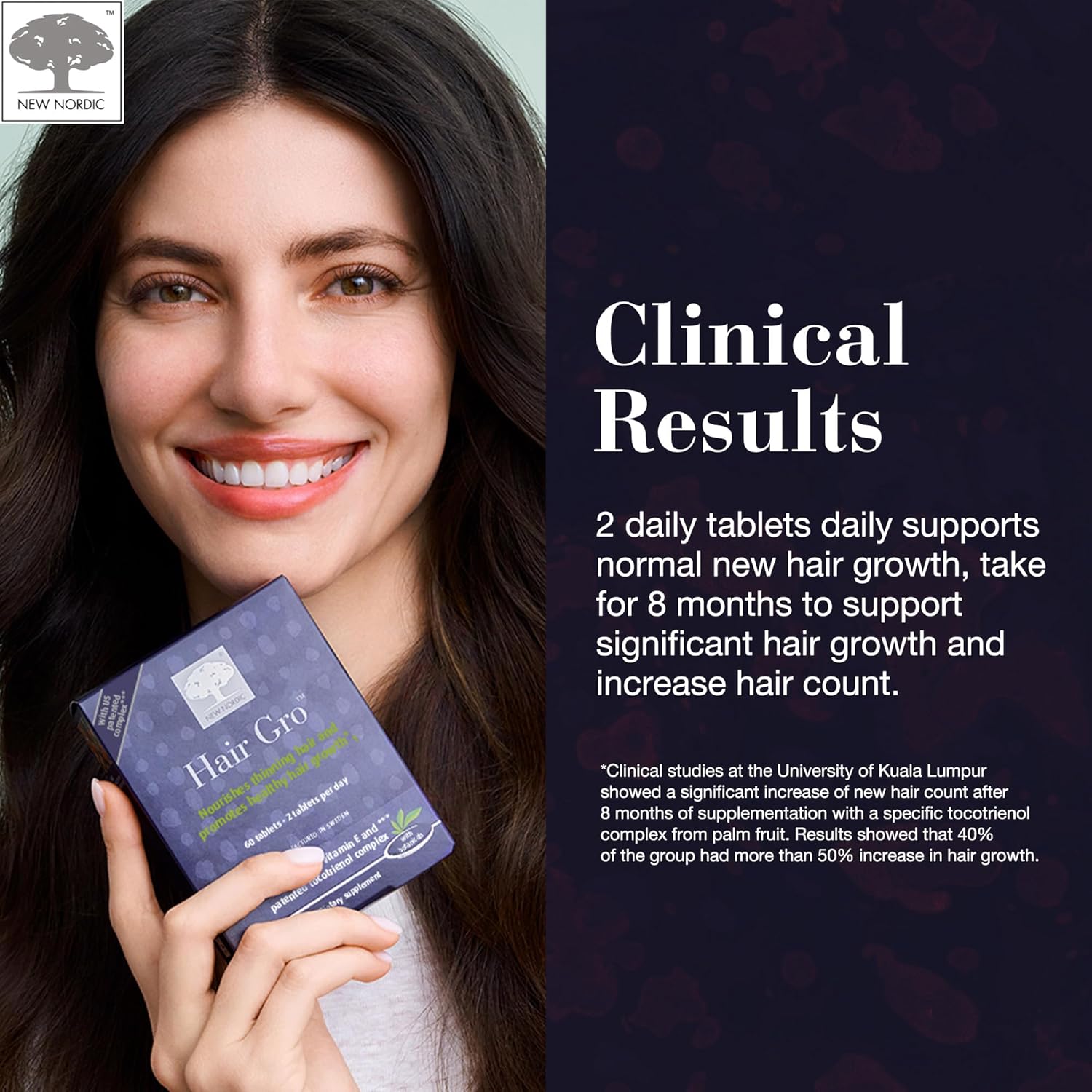 NEW NORDIC Hair GRO, Hair Growth Supplement, Biotin & Palm Fruit Extract Tocotrienols for Natural Regrowth, 60 Count (Pack of 1)
