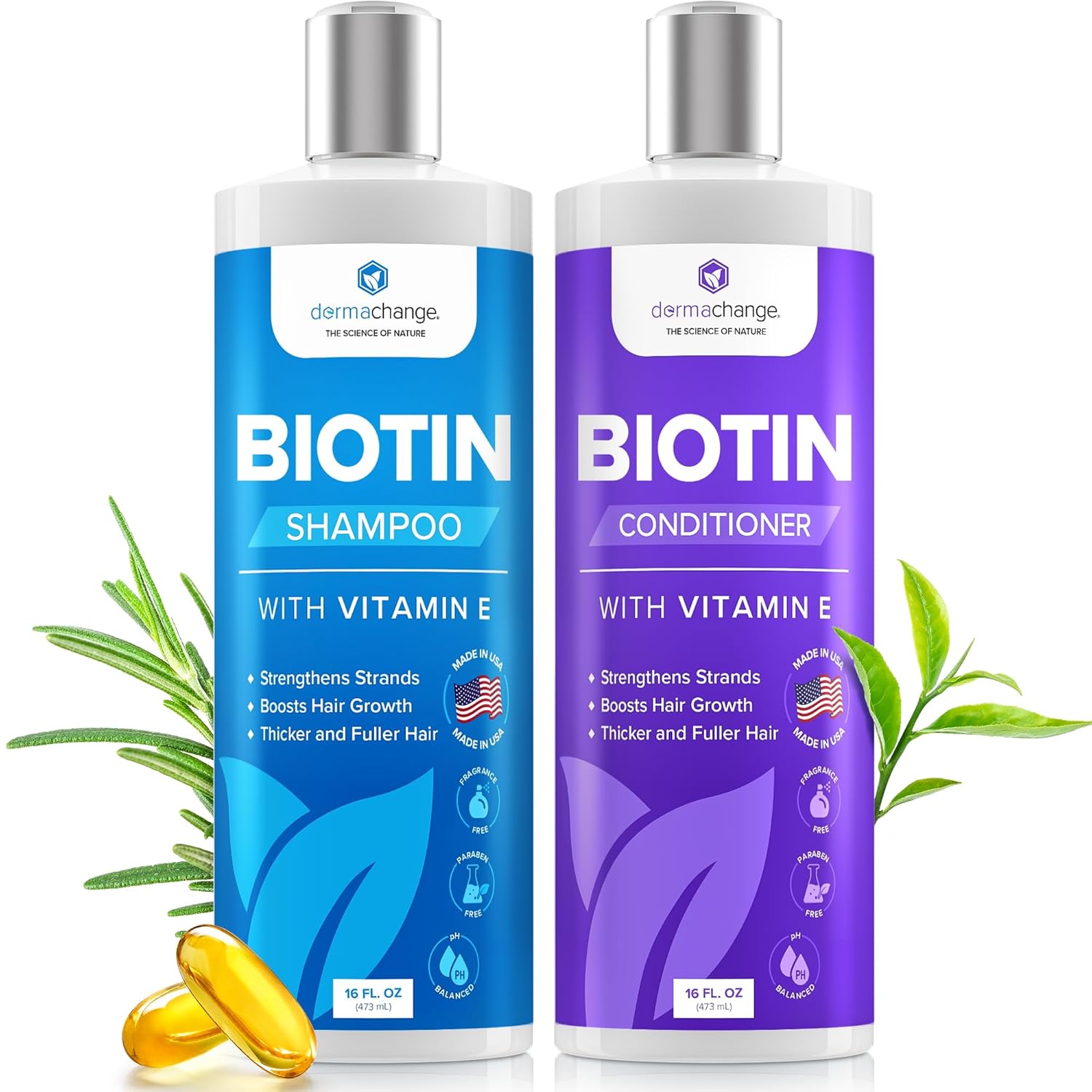 - VISIBLY HEALTHIER, THICKER, AND FULLER-LOOKING HAIR - DermaChange Hair Growth Shampoo and Conditioner helps nourish and rejuvenate hair from root to tip, promoting healthier, thicker, and fuller-looking hair. This hair thickening shampoo and conditioner helps stimulate hair follicles while helping reduce hair loss and thinning.