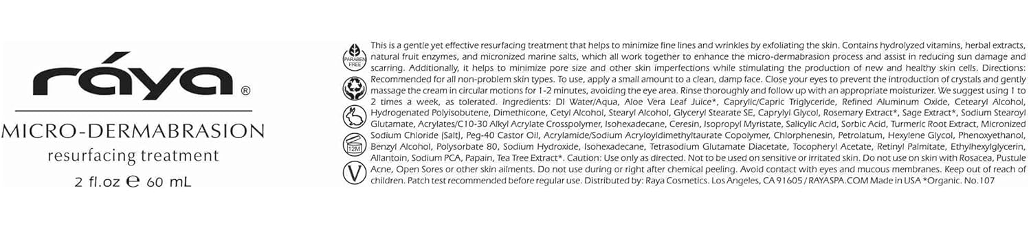 RAYA Microdermabrasion Facial Cream (107), Gentle Resurfacing and Cleansing Solution for Non-Problem Skin, Face Moisturizer, Face Cream for Women, Works to Minimize Fine Lines and Wrinkles, 2oz