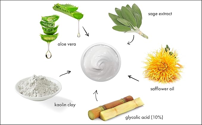 - Made with soothing Aloe Vera Gel, as well as Glycolic Acid (10%)