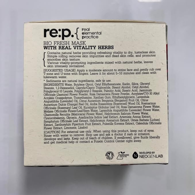- AT-HOME-SPA EXPERIENCE. Pamper yourself with RE:P Bio Fresh Pore Cleanser Mask, featuring a luxurious homemade texture derived from 100% Real Botanical Herb Fragments that deliver mild micro-exfoliating effects, transporting you to a state of blissful relaxation with every application.