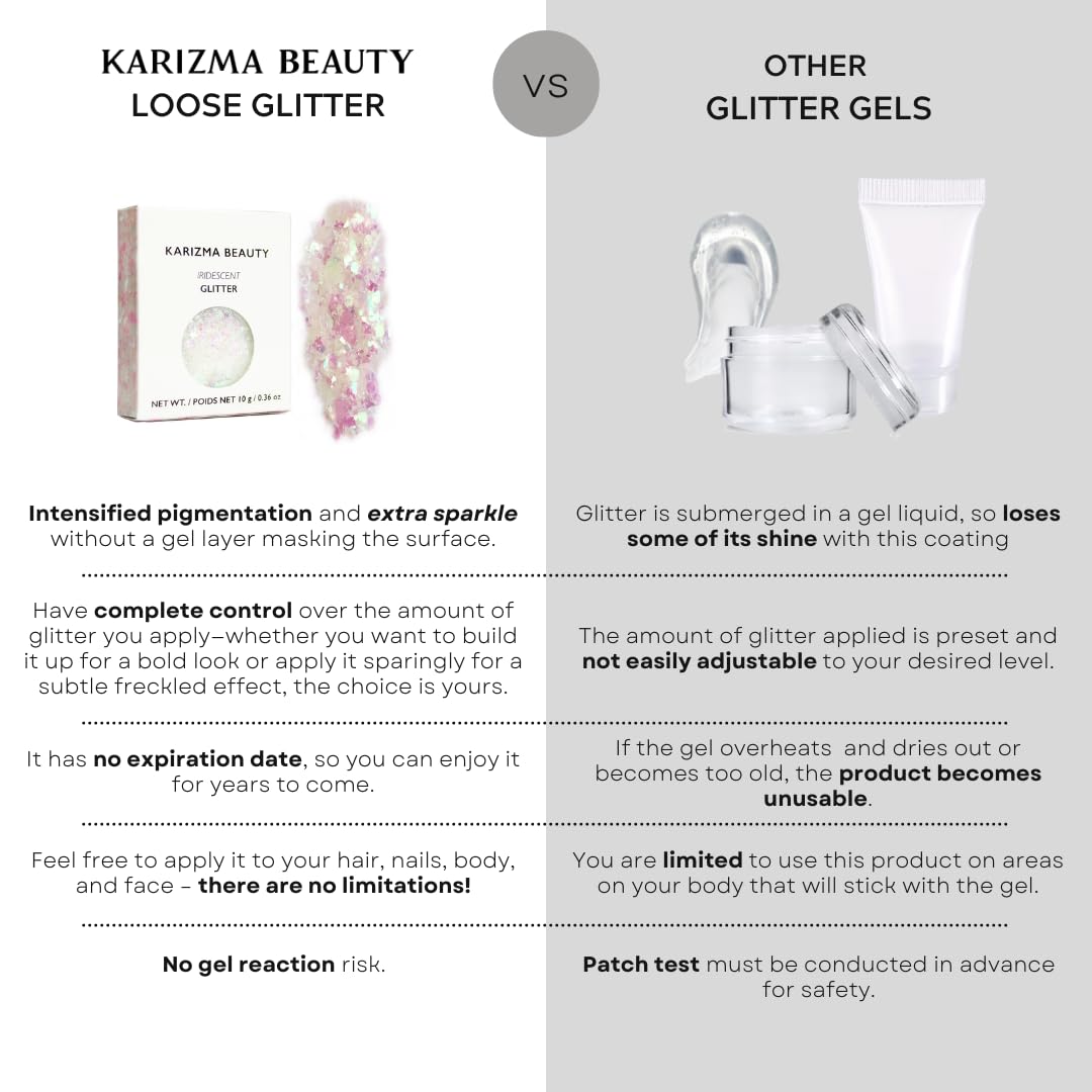 - Irresistible Shine: Our loose glitter boasts an unparalleled brilliance that outshines gel-based alternatives. Experience enhanced pigmentation and added sparkle. Get ready to glow like never before.