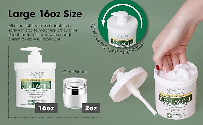 Advanced Clinicals Collagen Cream Body Lotion & Face Moisturizer W/Vitamin E | Skincare Moisturizing Collagen Lotion For Women, Men, Hand, & Neck Improves Look Of Crepey Skin & Uneven Dry Skin, 2pc