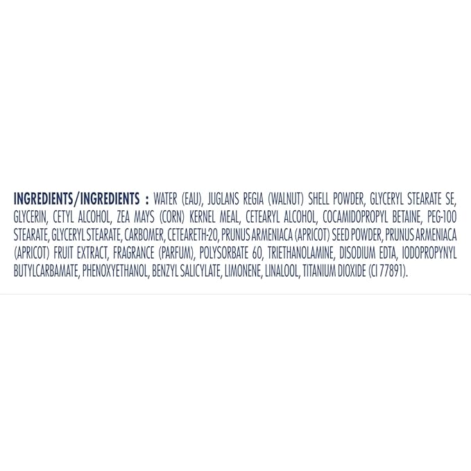 - Active Ingredients : water (aqua, eau), juglans regia (walnut) shell powder, glyceryl stearate, glycerin, sodium lauryl s