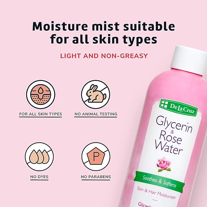 - This rosewater with glycerin is a great moisturizer and humectant for hair too! Splash all over face, hair and body after you shower or anytime during the day for a quick lavishing refresh.