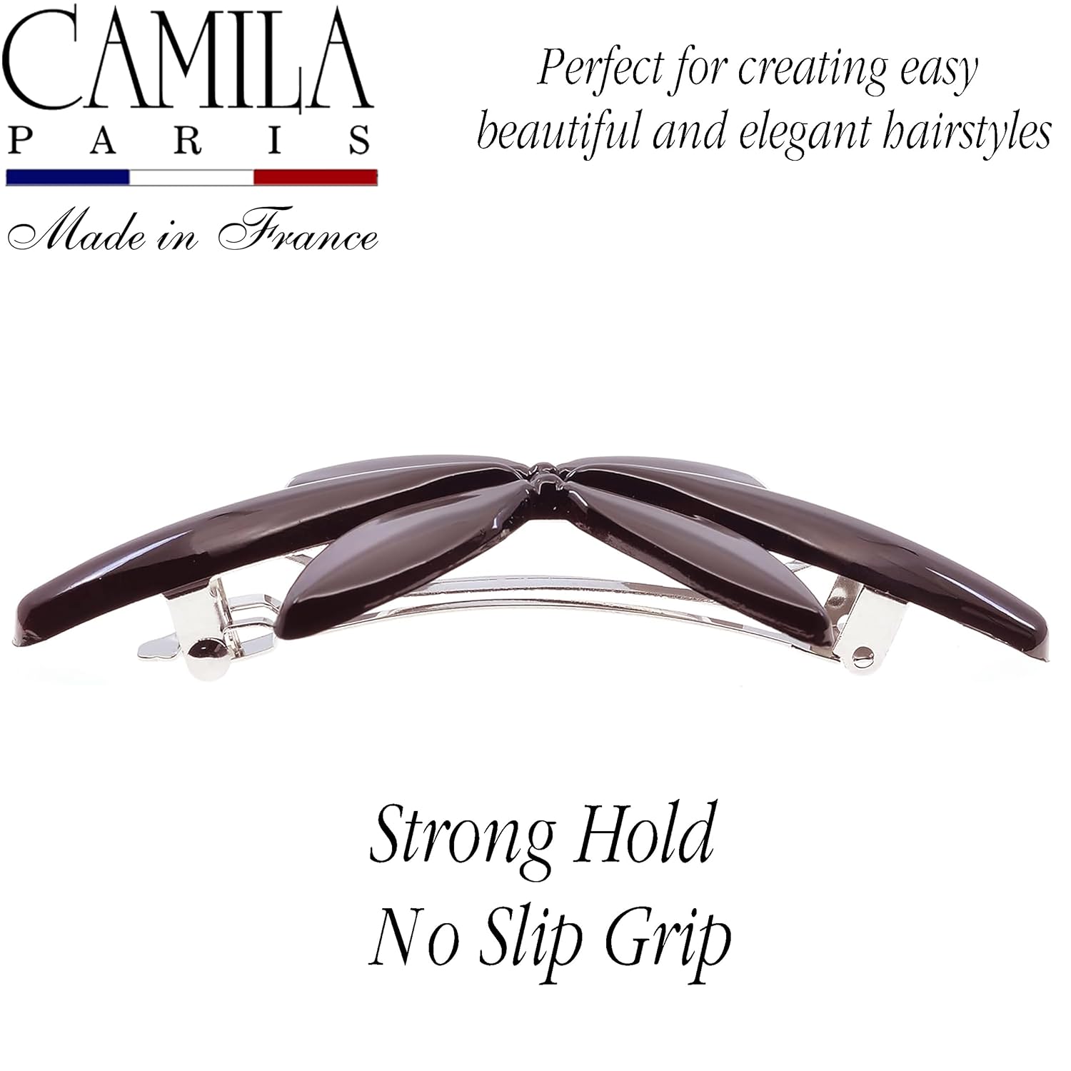 Camila Paris CP2426 French Hair Barrette Clip for Girls Flower, Tortoise Automatic Clasp Strong Hold Grip Hair Clips for Women, No Slip and Durable Styling Girls Hair Accessories, Made in France