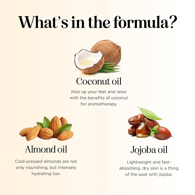 - At Home Spa Day - Say goodbye to massage oils with unsavory fillers and say hello to our vanilla massaging oil made with jojoba coconut and almond oils that pamper the skin and help melt your troubles