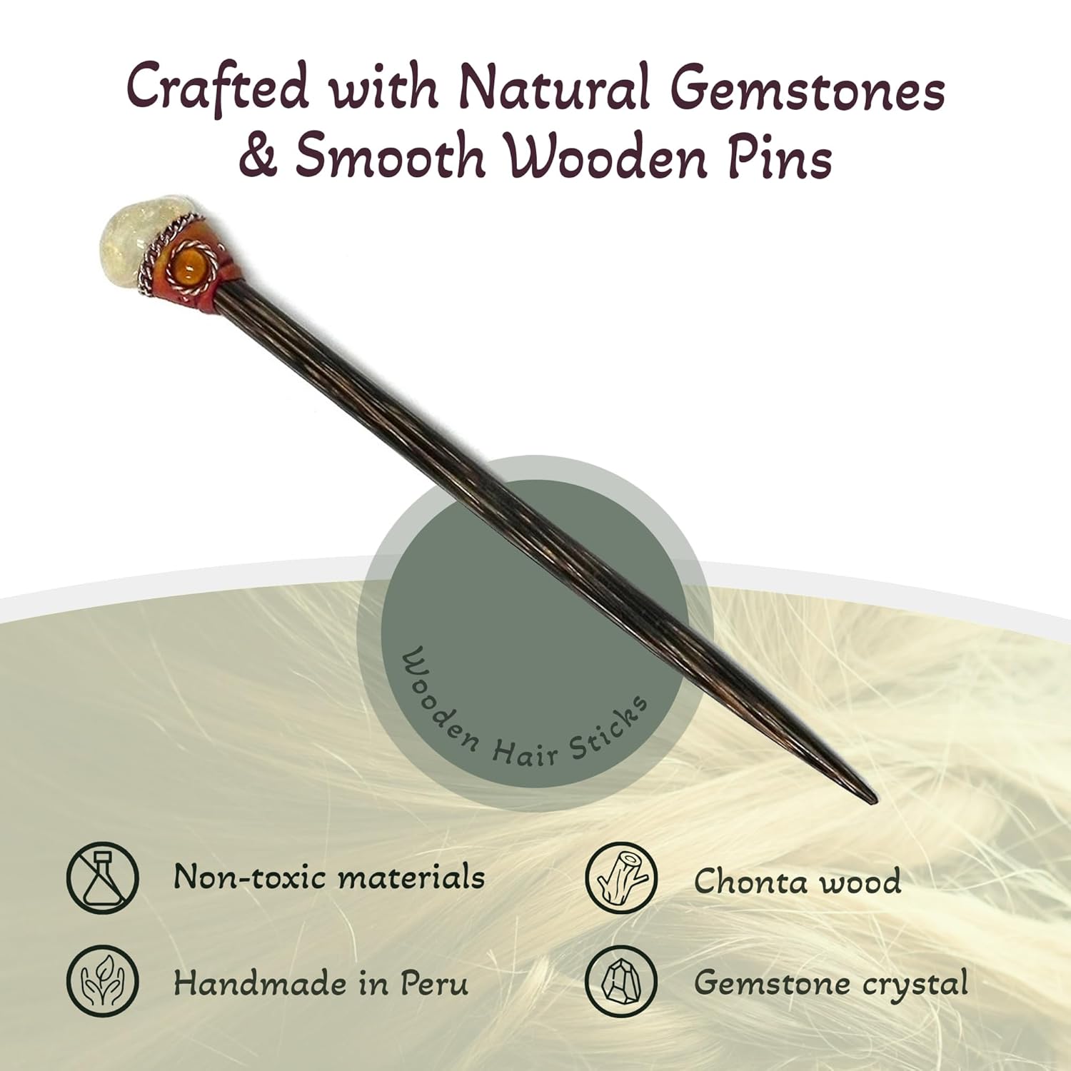 Mia Jewel Shop - Natural Tumbled Healing Gemstone Crystal Chonta Wooden Hair Sticks – Handmade Hair Sticks for Women | Hair Pins Boho Reiki Accessories, Fashion Gifts (Yellow Citrine)
