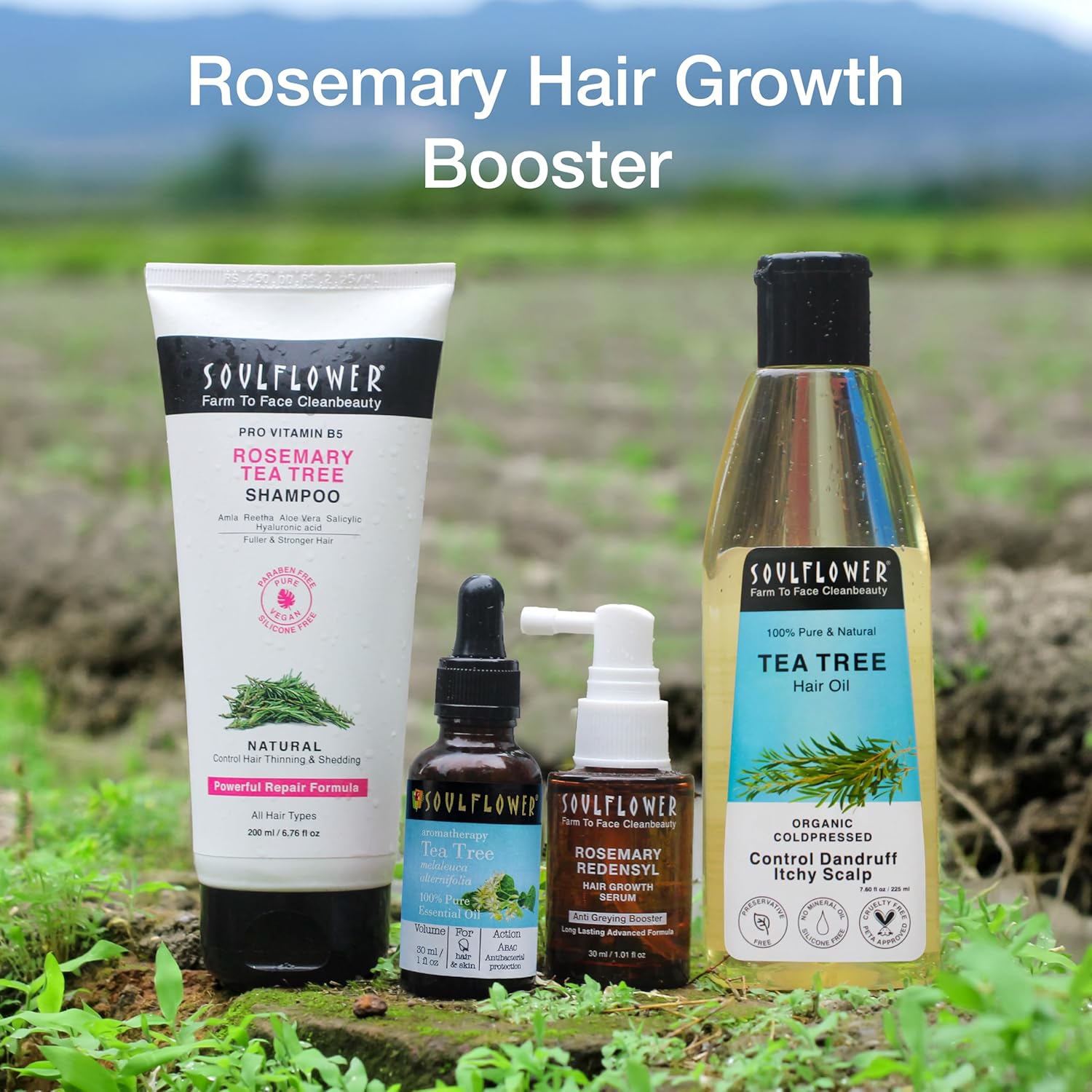 - EASY TO USE: Take a small amount of Soulflower Cold Pressed Tea Tree Scalp Hair Oil and massage directly on your scalp and hair, apply some on the length as well. Mix 4-5 drops of any Soulflower Rosemary Essential Oil with Tea Tree Scalp Hair Oil 1 tbsp & apply for additional benefits like dandruff control and hair growth.
