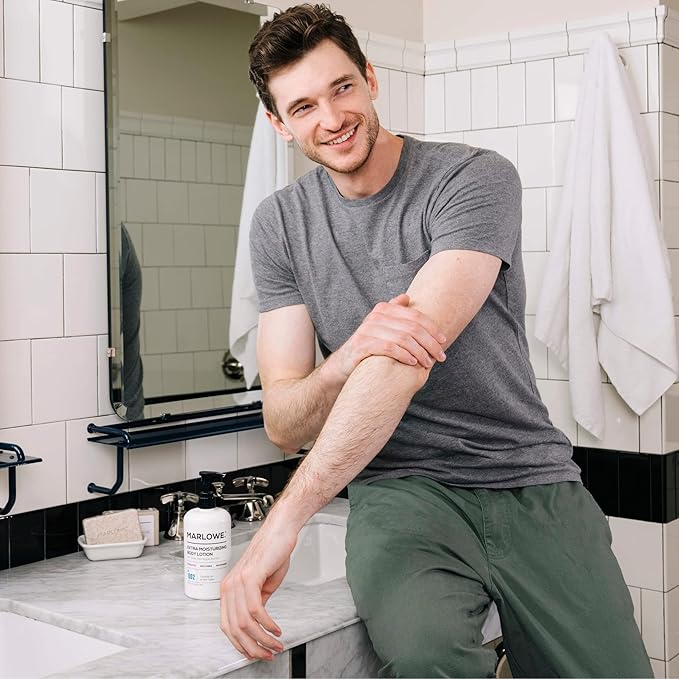 - Experience The MARLOWE. Difference: Our men's body lotion is crafted with a unique combination of natural ingredients like moisturizing Aloe Vera extracts and amino acids. For softer skin, apply the lotion generously onto hands & body twice a day