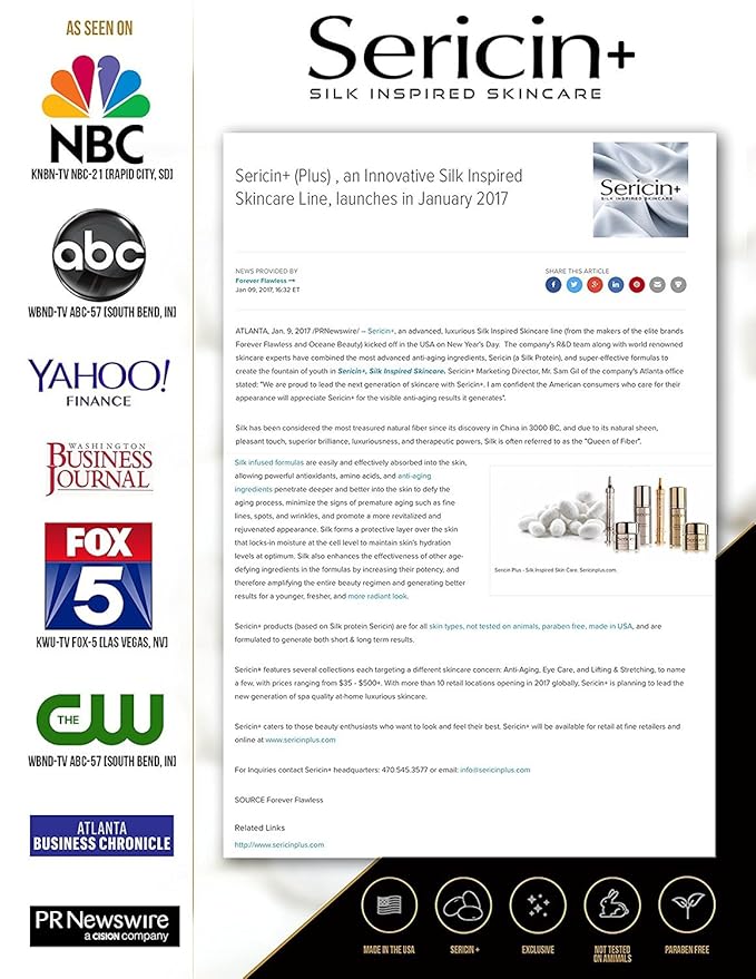 - ๐ INNOVATIVE - At Sericin+ we have combined years of Research & Development, cutting-edge laboratories, the most advanced anti-aging ingredients, and super-effective formulas developed by skincare specialists, to discover the fountain of youth in Sericin+, Silk Inspired Skincare.