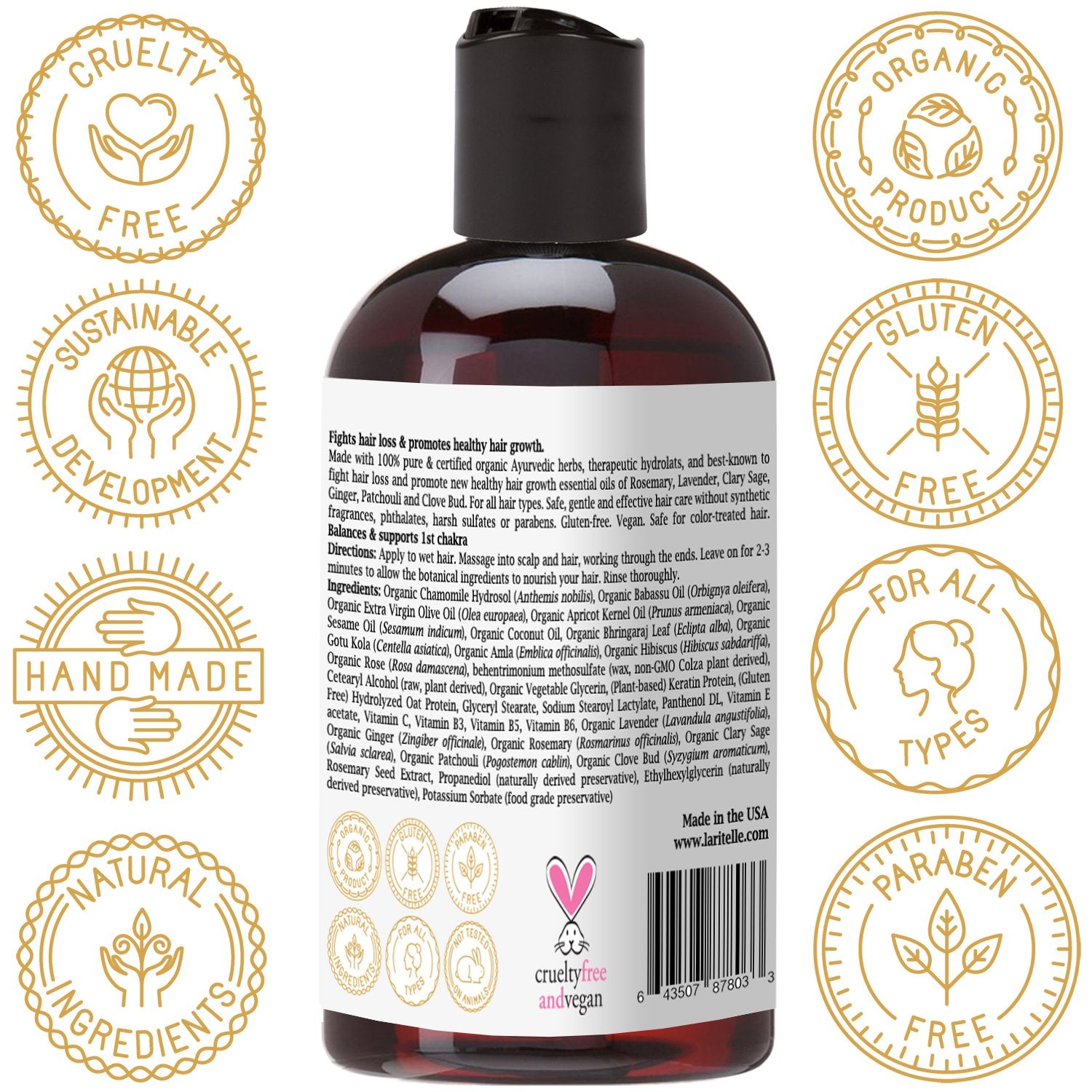 Laritelle Organic Travel Size Conditioner 2 oz | Fortifying, Strengthening & Rejuvenating | Stops Hair Shedding, Promotes Hair Growth | Ayurvedic Herbs, Lavender, Ginger, Rosemary, Patchouli & Cloves
