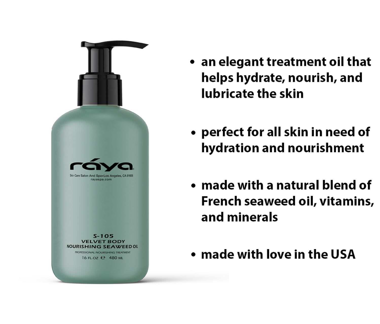 RAYA Velvet Body Nourishing Seaweed Oil 16 oz (S-105) | Hydrating and Nourishing Body Treatment | Made with Natural French Seaweed Oil, Vitamins, and Minerals
