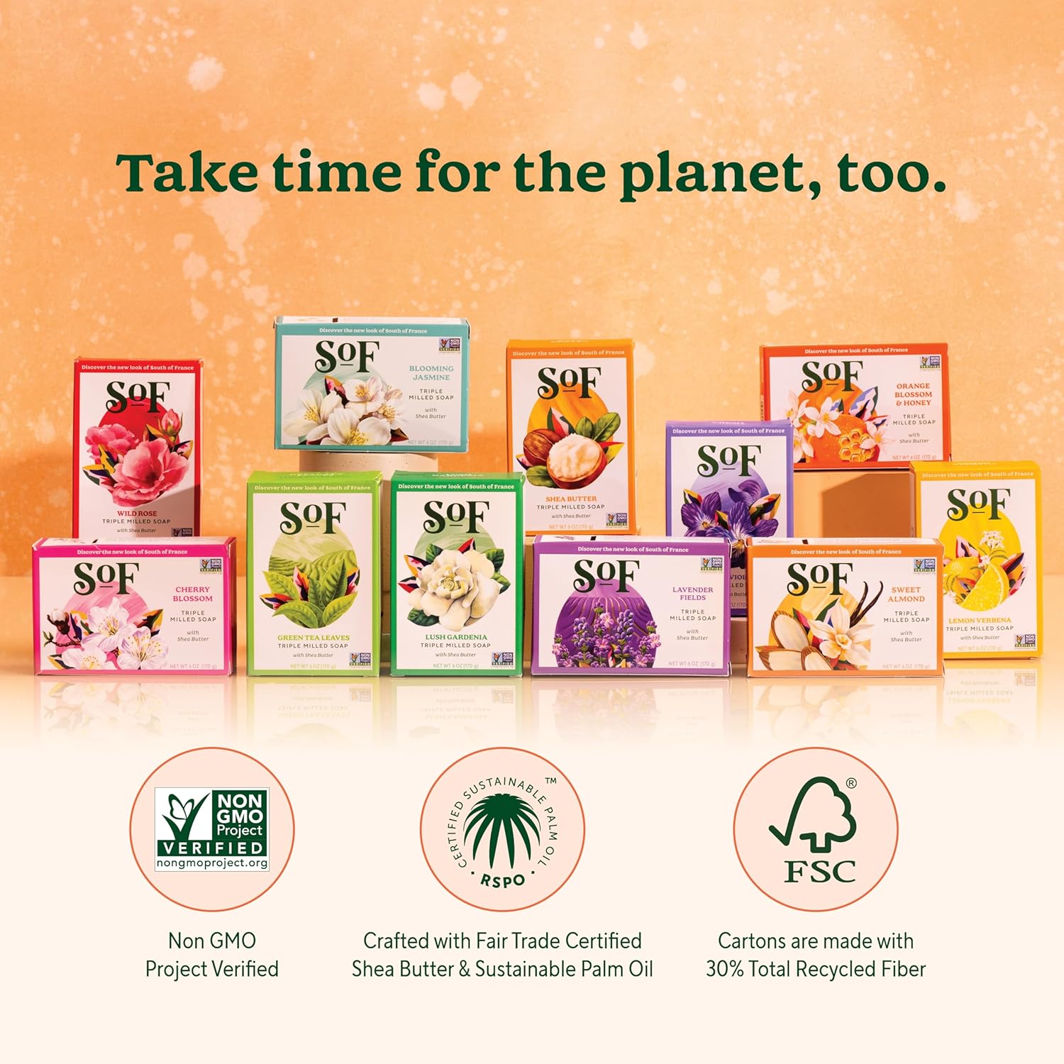 - CREAMY AND HYDRATING BAR SOAP: Our long-lasting, signature bar soap is triple milled with coconut oil and sustainable palm oil, creating a creamy lather for an uplifting cleansing experience. Organic and Fair Trade Certified shea butter leaves skin soft, moisturized and happy.