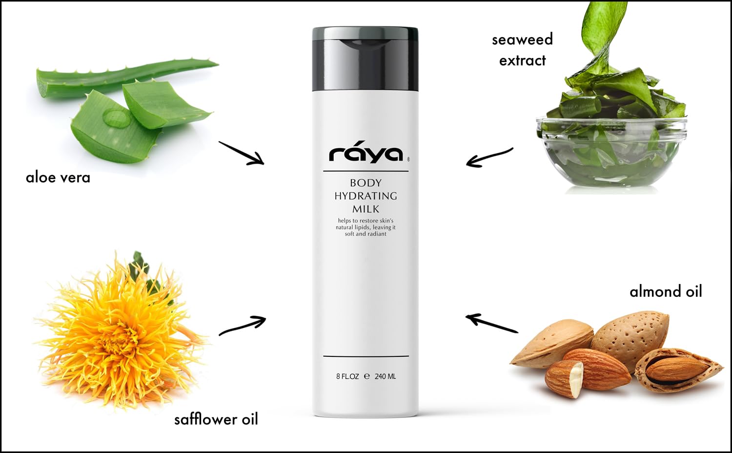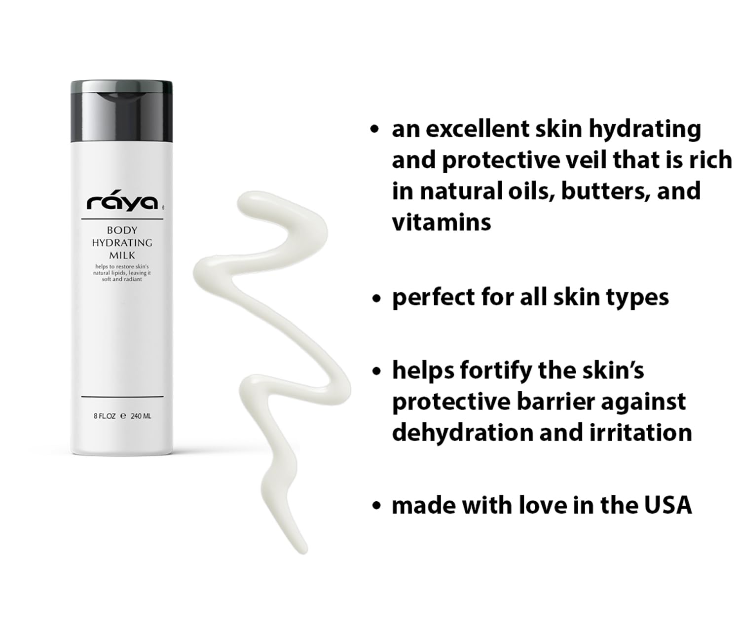 Raya Body Hydrating Milk 8 oz (S-102) | Hydrating, Moisturizing, and Restorative Body Lotion | Rich in Natural Oils, Butters, and Vitamins | Calms and Softens