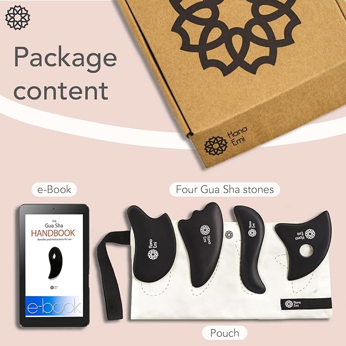 - Multiple shapes for the best experience; this four-piece gua sha set facial tool comes in different shapes to use in various parts of your body for the most comfortable experience and to let you feel like you are in a spa.