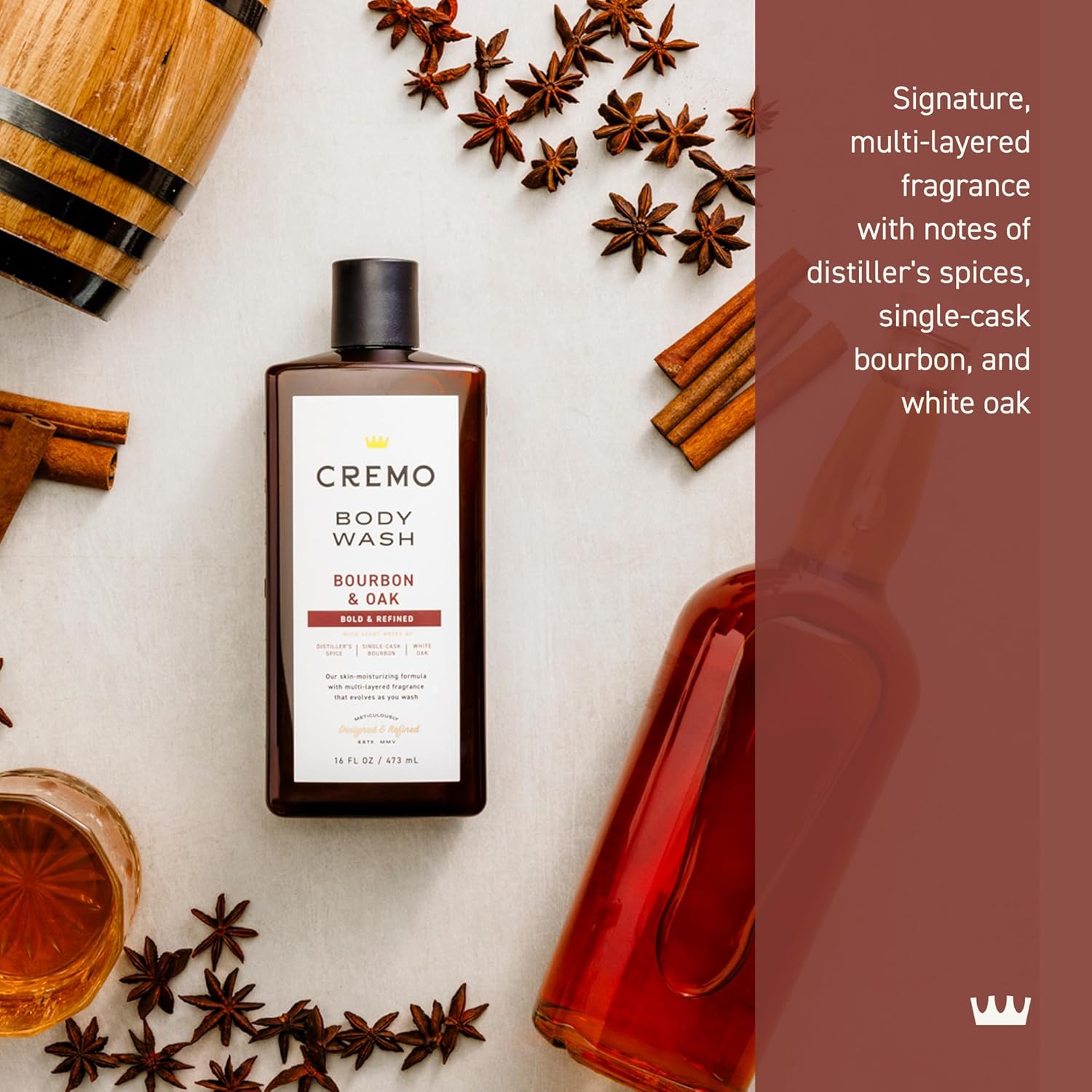 Cremo Body Wash Men, A Sophisticated Blend of Distillers Spice, Fine Bourbon and White Oak, 16 Fl Oz