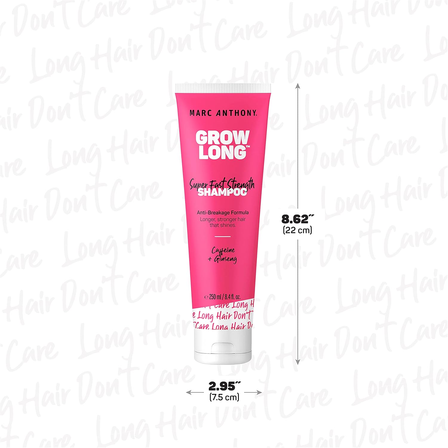 - Grow Long Super-Fast Strength Shampoo: This formula from Marc Anthony, with Caffeine, Ginseng, & Vitamin E, is designed to remove build-up from the hair & scalp while preventing moisture loss & breakage so you can get longer, stronger hair. 8.4 fl oz.
