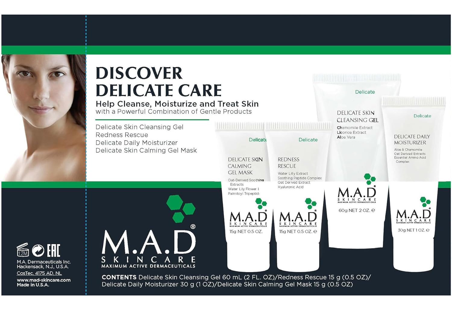 M.A.D Skincare Discover Delicate Care Set – Complete Sensitive Skin Regimen with Gentle Cleansing Gel, Redness Rescue, Daily Moisturizer & Calming Gel Mask – Hydrates & Soothes Irritated Skin