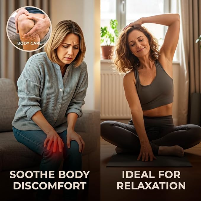 - Soothes body & muscles: Ideal for massages, its comforting qualities may be beneficial for tired knees & other limbs. Dilute with a carrier oil or unscented massage oil before use. You can also try it with a roller massage ball after a workout.