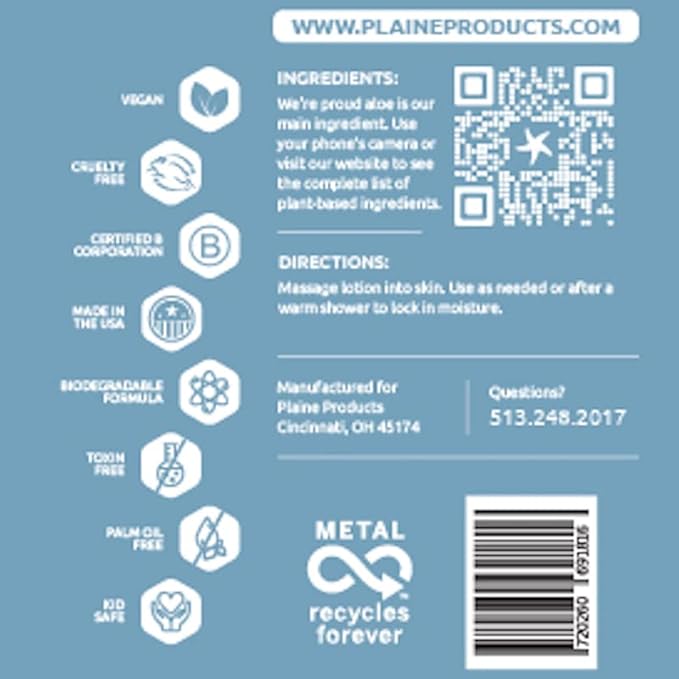 Plaine Products Eco-Friendly Body Lotion - Rosemary, Mint, Vanilla - Sensitive Skin, 16 oz (Refill Bottle)