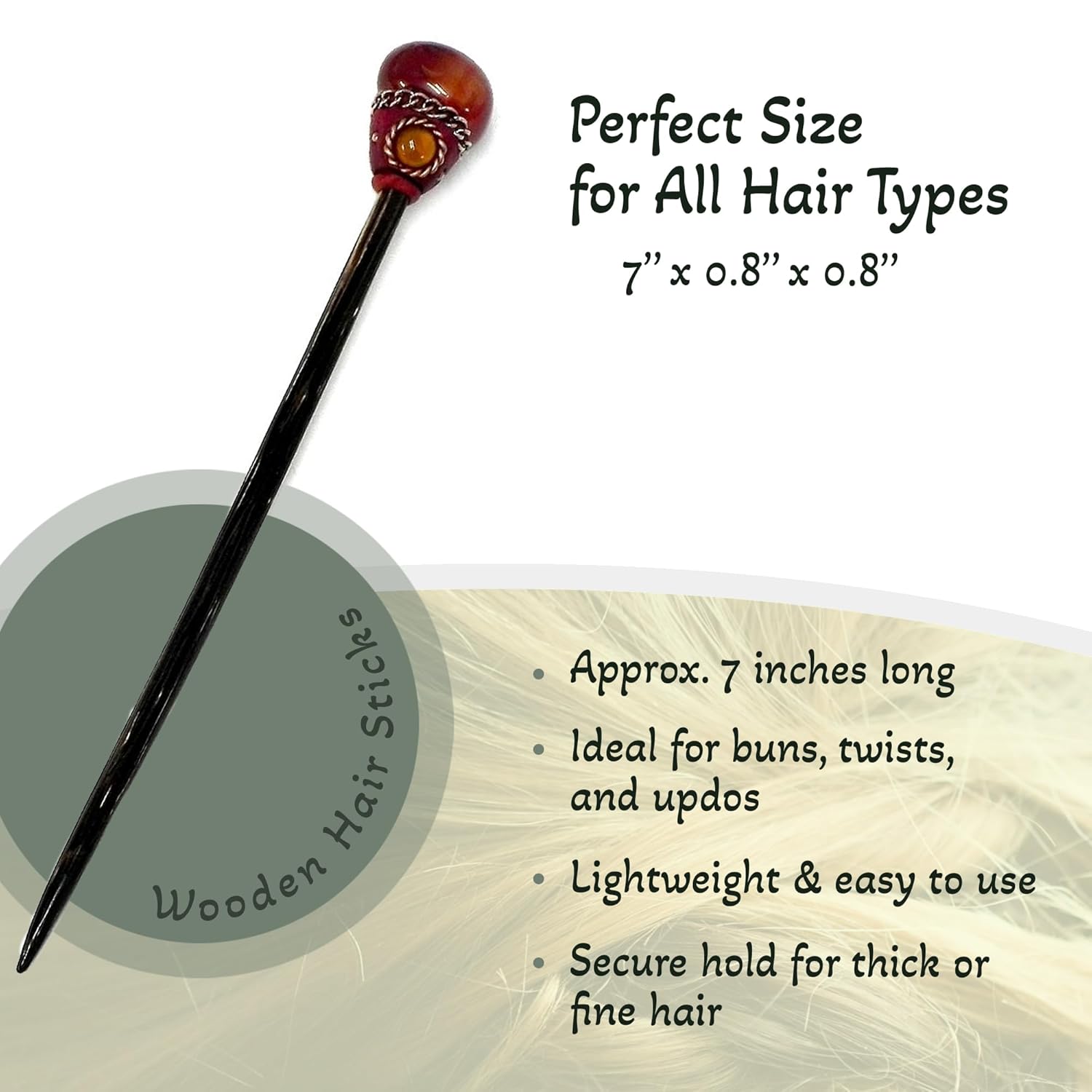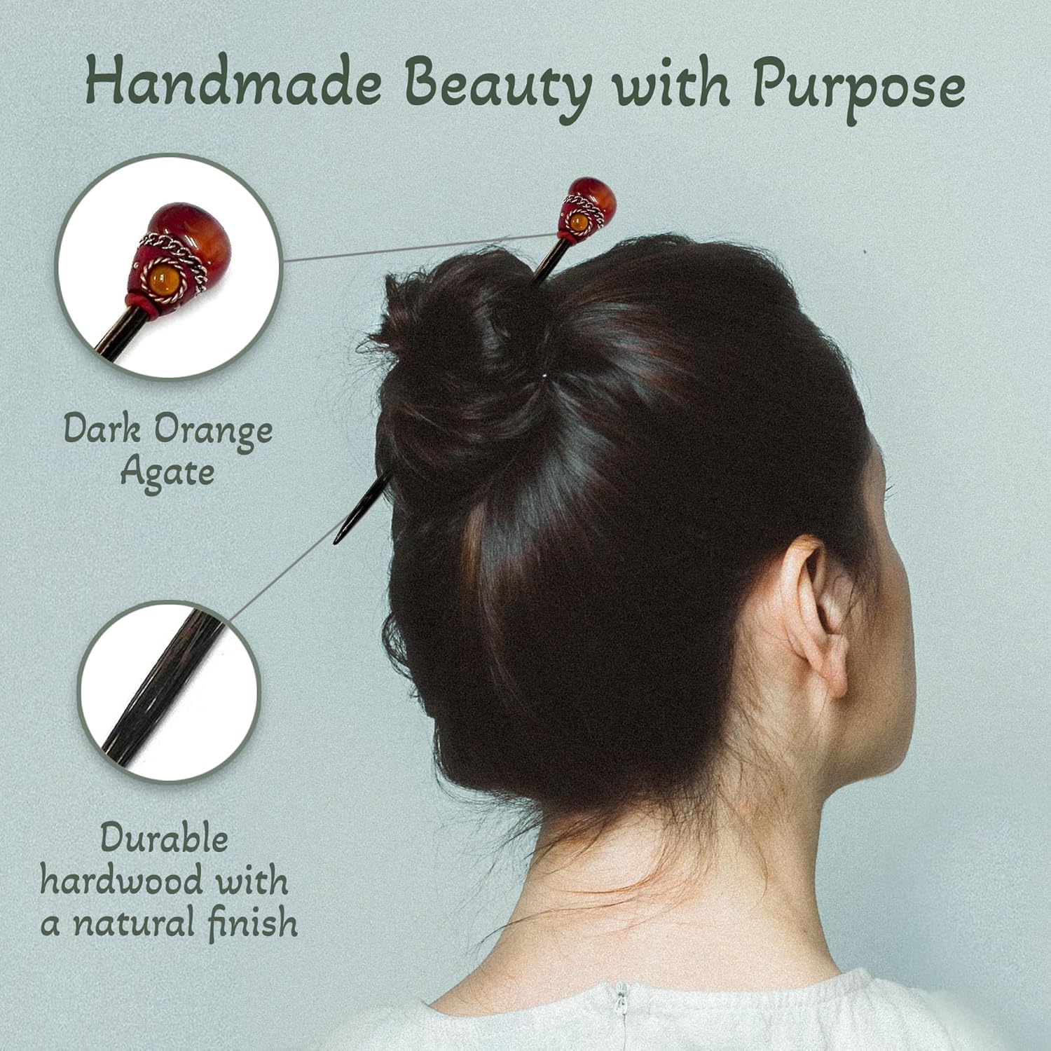 Mia Jewel Shop - Natural Tumbled Healing Gemstone Crystal Chonta Wooden Hair Sticks – Handmade Hair Sticks for Women | Hair Pins Boho Reiki Accessories, Fashion Gifts (Dark Orange Agate)
