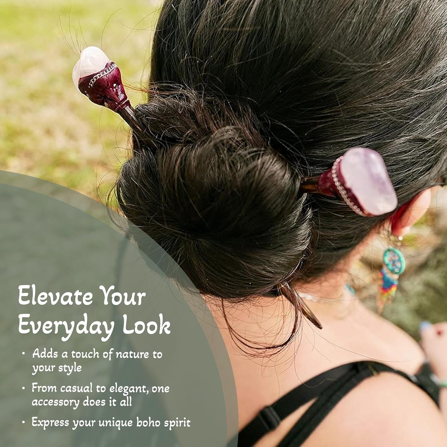 - Boho Chic Accessory – This beautiful hairpiece features a natural tumbled stone, adding elegance to your hairstyle. Perfect for hair buns, these decorative hairpins are designed for women who love stylish and unique accessories. Whether dressing up for a special occasion or adding a boho touch to your everyday look, these handmade hair pins are a must-have. Ideal for securing your updo with a touch of nature's beauty, these hairpins offer both functionality and charm.