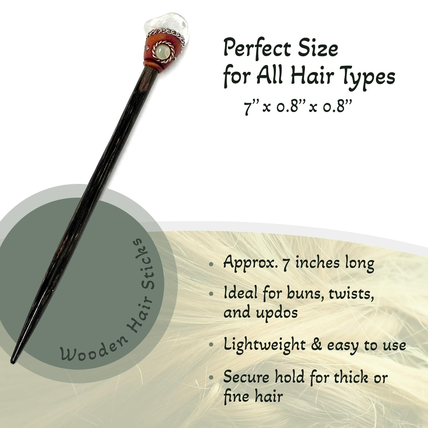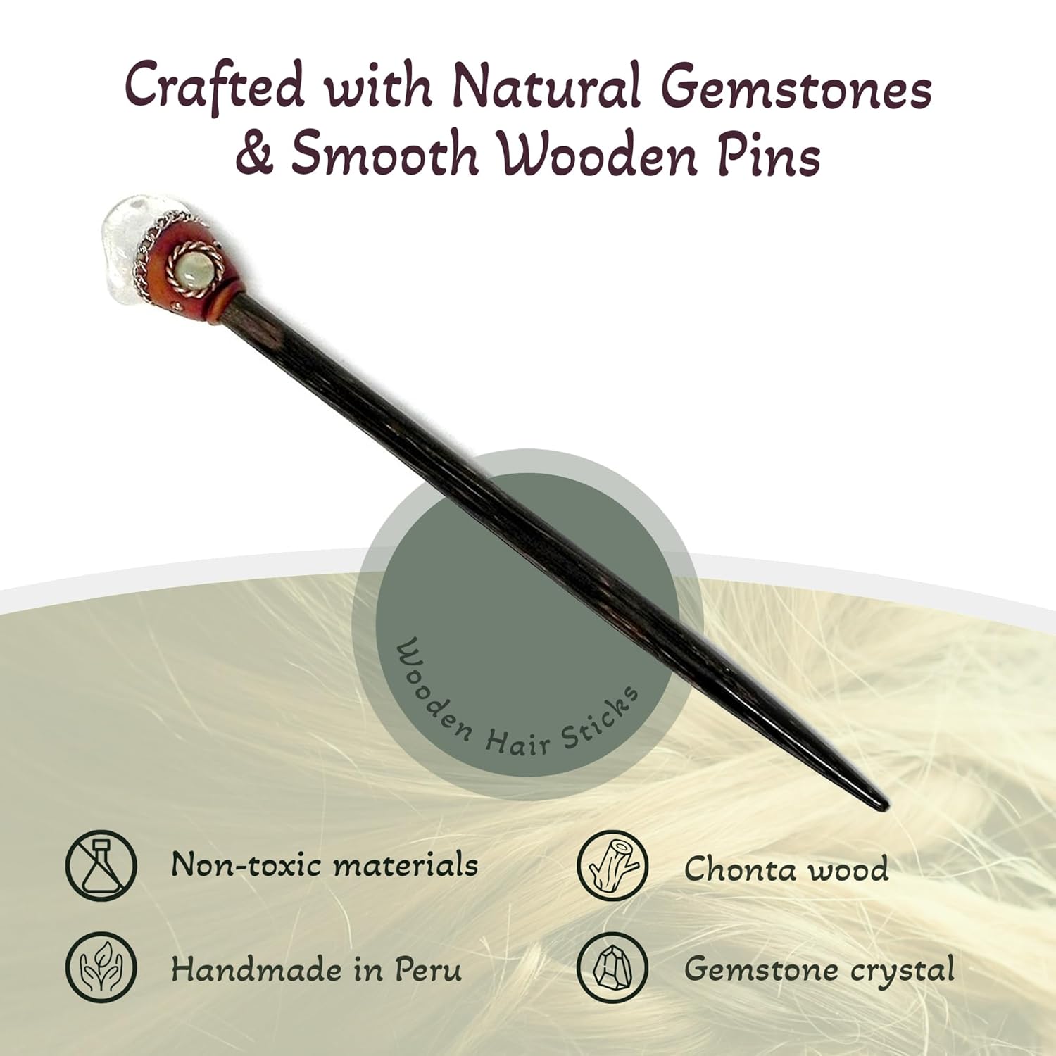 Mia Jewel Shop - Natural Tumbled Healing Gemstone Crystal Chonta Wooden Hair Sticks – Handmade Hair Sticks for Women | Hair Pins Boho Reiki Accessories, Fashion Gifts (Clear Quartz)