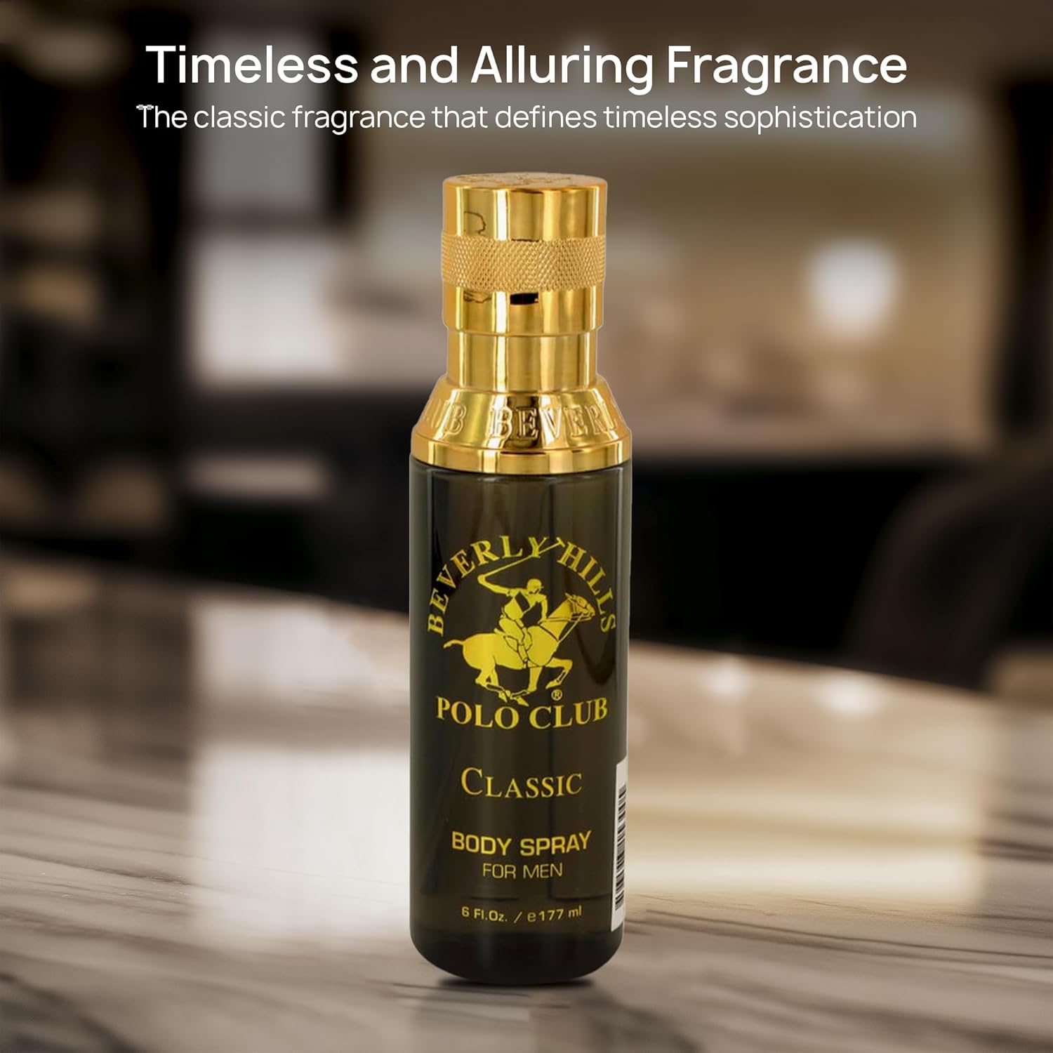 Beverly Hills Polo Club Body Spray for Men - BHPC Classic - Notes of Patchouli, Cedar, Vetiver, Ambergris & Musk - Long Lasting Cologne Scents - Ideal Gift for Him, 6oz