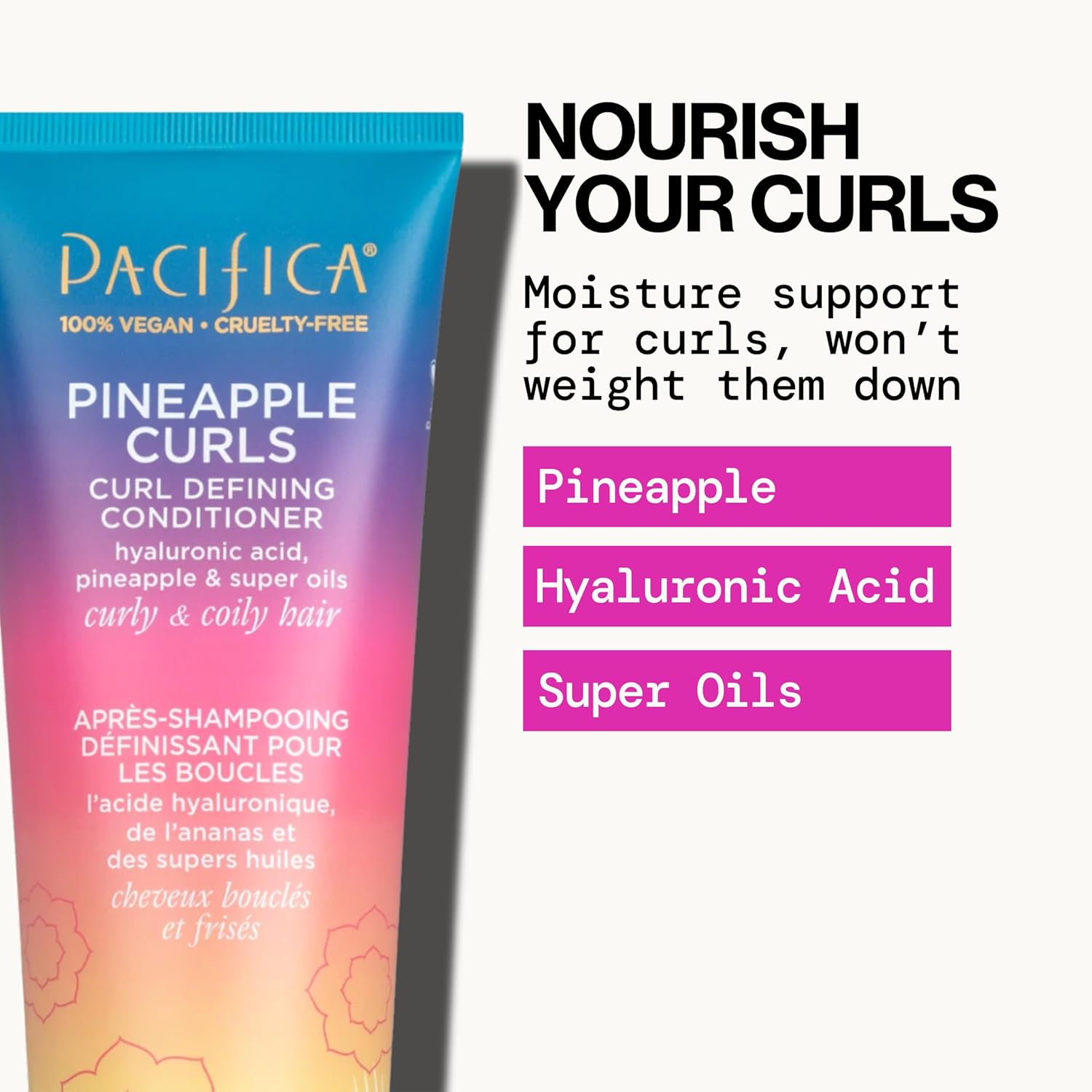Pacifica Beauty, Pineapple Curls Defining Natural Conditioner, For Curly, Coily and Textured Hair Types, Pineapple Scent, Sulfate Free and Silicone Free, 100% Vegan and Cruelty Free