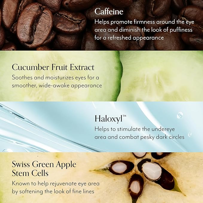 - Special Feature : Caffeine, peptides and plant stem cells help reduce the look of puffy, tired eyes and dark circles