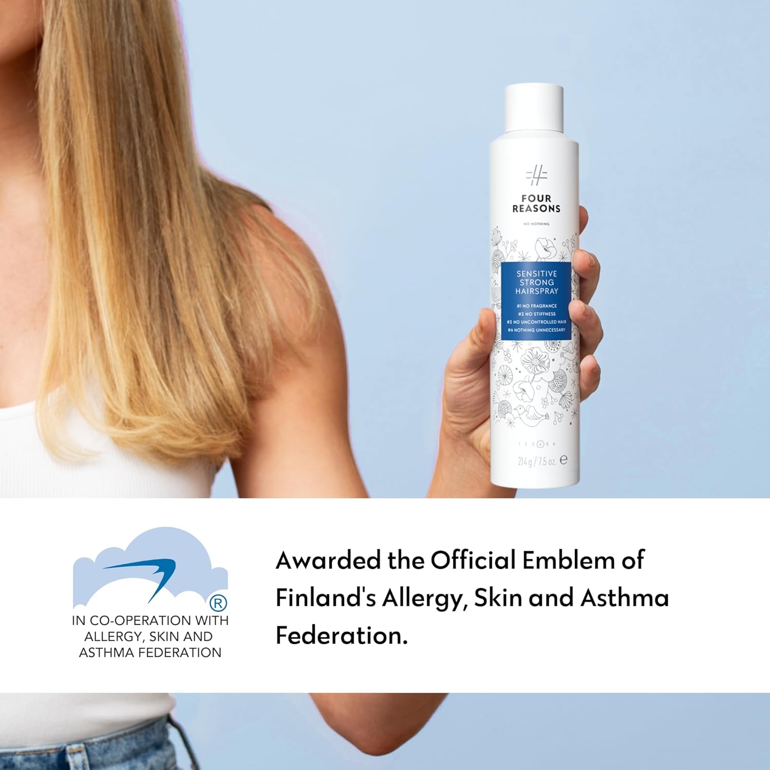 No nothing Very Sensitive Strong Hairspray - Fragrance Free Strong Styling and Finishing Spray, Hypoallergenic, Unscented Hair Spray 7.5 Ounce